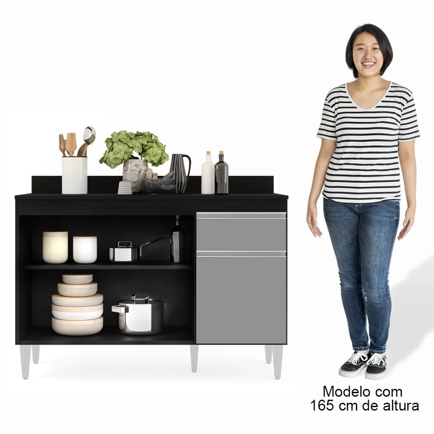 Se tem um cômodo onde precisamos de toda a funcionalidade possível, com certeza se trata da cozinha, não é mesmo? Ou seja, onde podemos preparar as refeições rotineiras deve ser prático e funcional! O modelo Balcão Arizona Preto/Cinza acompanha tampo, possui 3 portas e 1 gaveta de puxadores em perfil alumínio e ainda conta com 1 prateleira interna oferecendo maior organização. Além disso, pés em PVC e estrutura em MDP com acabamento em pintura BP fazem dele um móvel imperdível para sua casa!!