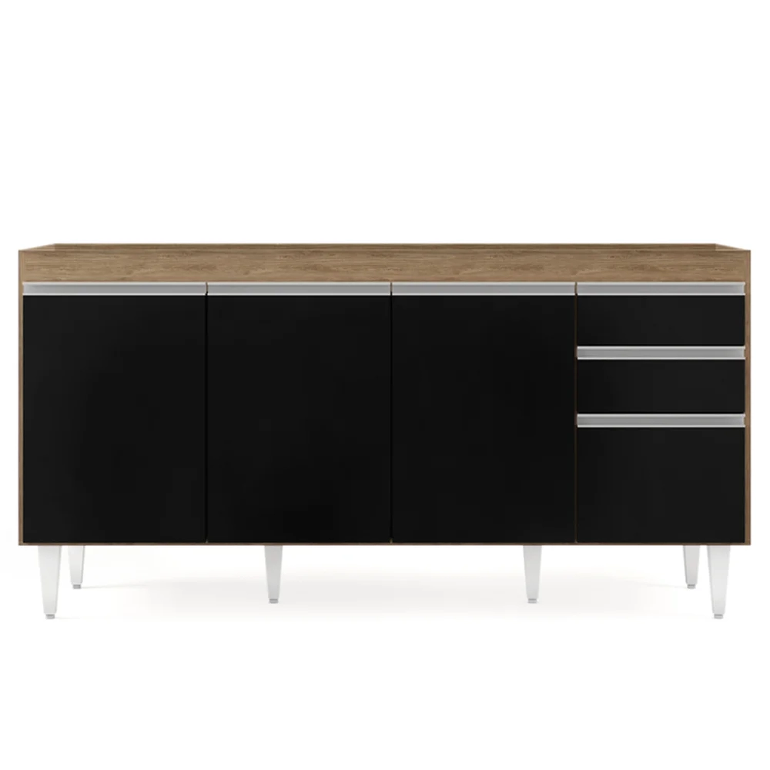 Quem está montando a mobília da casa sabe que esse cômodo às vezes é onde mais ficamos em dúvida sobre os complementos, não é? Mas que tal começar pelos itens essenciais como o balcão para pia? Sim, o modelo Arkansas Castanho/Preto da Lumil Móveis é uma ótima alternativa por 4 portas com puxador em perfil metálico contendo amplo espaço interno e 2 gavetas para seus talheres! Ou seja, elementos que fazem toda a diferença no dia a dia. Ah, e tudo em MDP com acabamento em pintura BP e pés em PVC para sustentação do móvel!!
