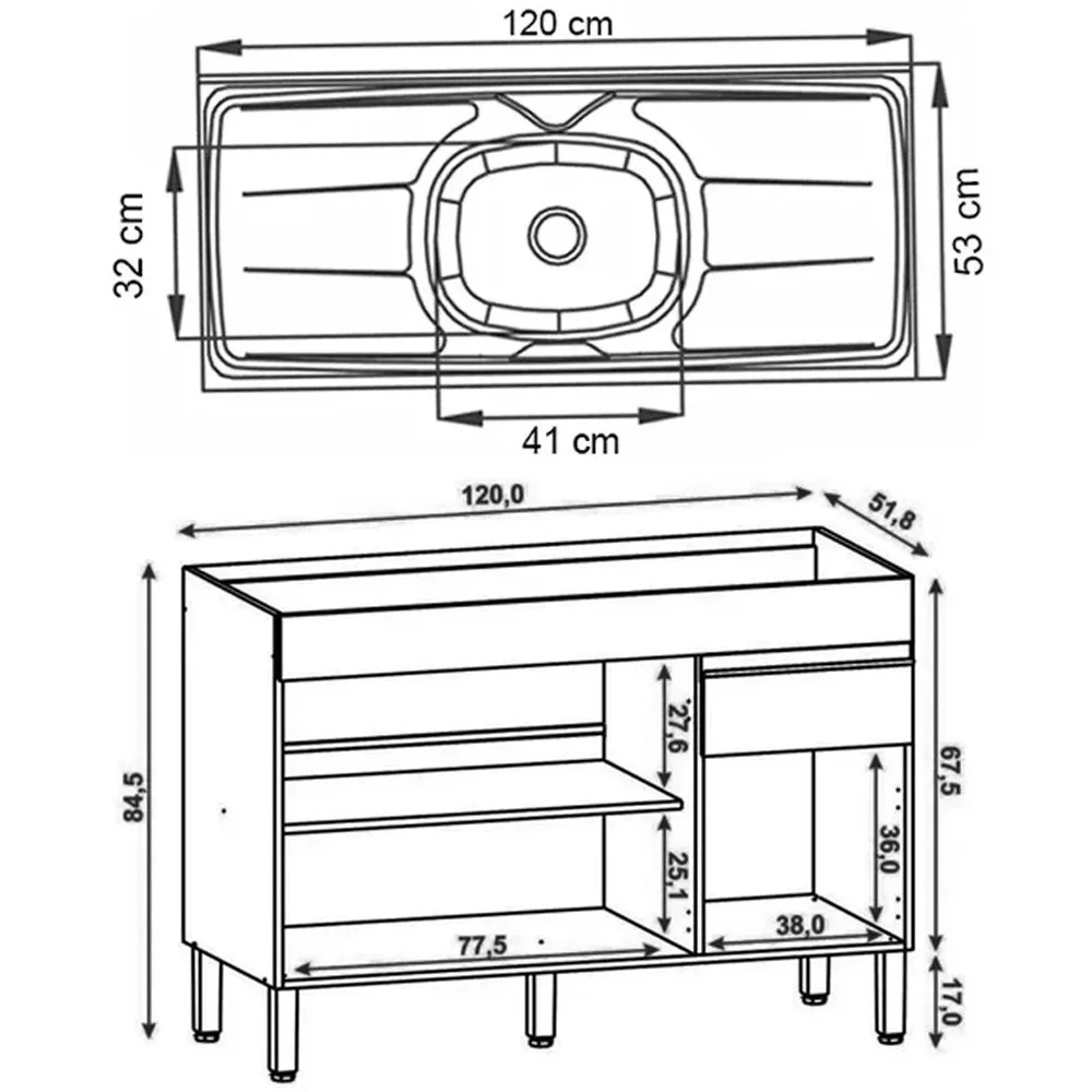 Balcão: 120 cm x 84,5 cm x 51,8 cm.