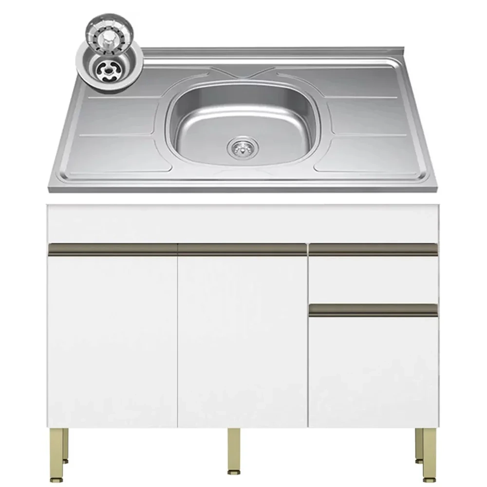 O Balcão Gabinete acompanha Pia Inox de 120cm com cuba e válvula, uma gaveta e três portas, ele permite guardar utensílios e mantimentos de forma organizada e aproveitar o espaço. O Balcão com Pia tem um design moderno e pode combinar com diferentes estilos de decoração, além de lindo ele é feito de material resistente, portas com dobradiças 100% metálicas que garante mais segurança e qualidade ao produto, puxadores em perfil alumínio com pintura epóxi e prateleira interna que permitem melhor organização dos itens, aplicação de textura sensível ao toque e acabamento de pintura com secagem em luzes UV.