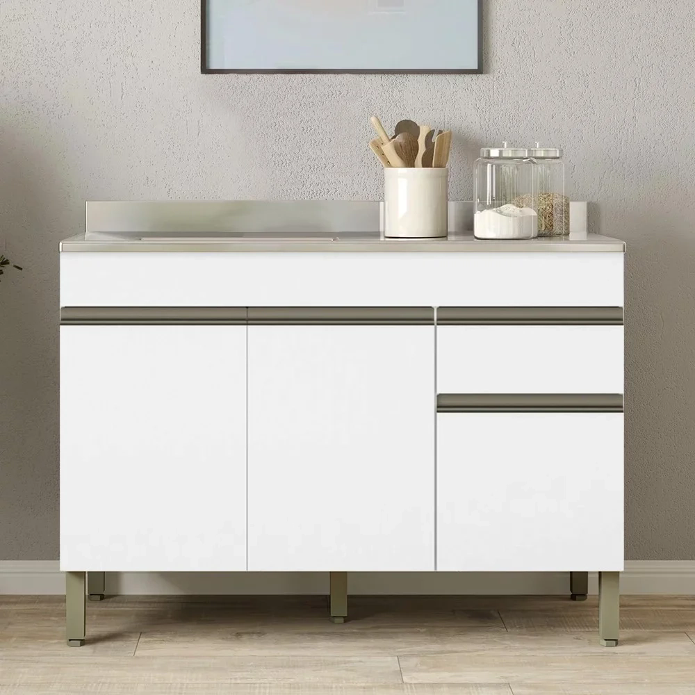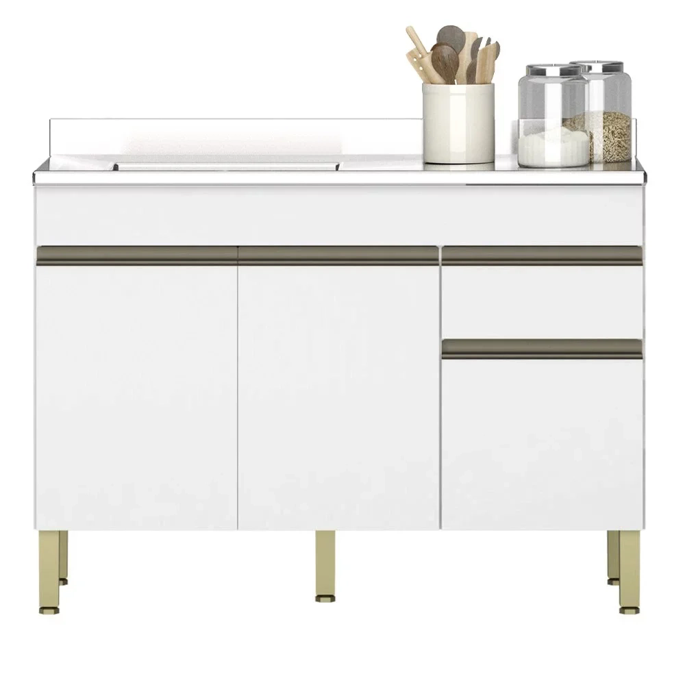 Conheça agora o Balcão Gabinete 3 Portas com Pia 120cm Lina Z06 Supremo, da Mpozenato, um móvel prático e funcional para a sua Cozinha.