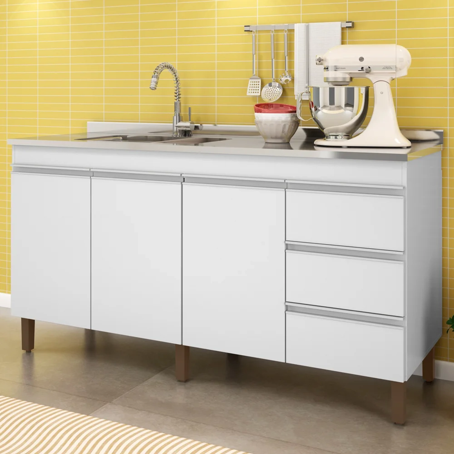 O Balcão Gabinete Com Pia 160cm 3 Portas Karen Z49 Branco, da Mpozenato é uma ótima opção se você quer organizar e inovar a sua Cozinha.