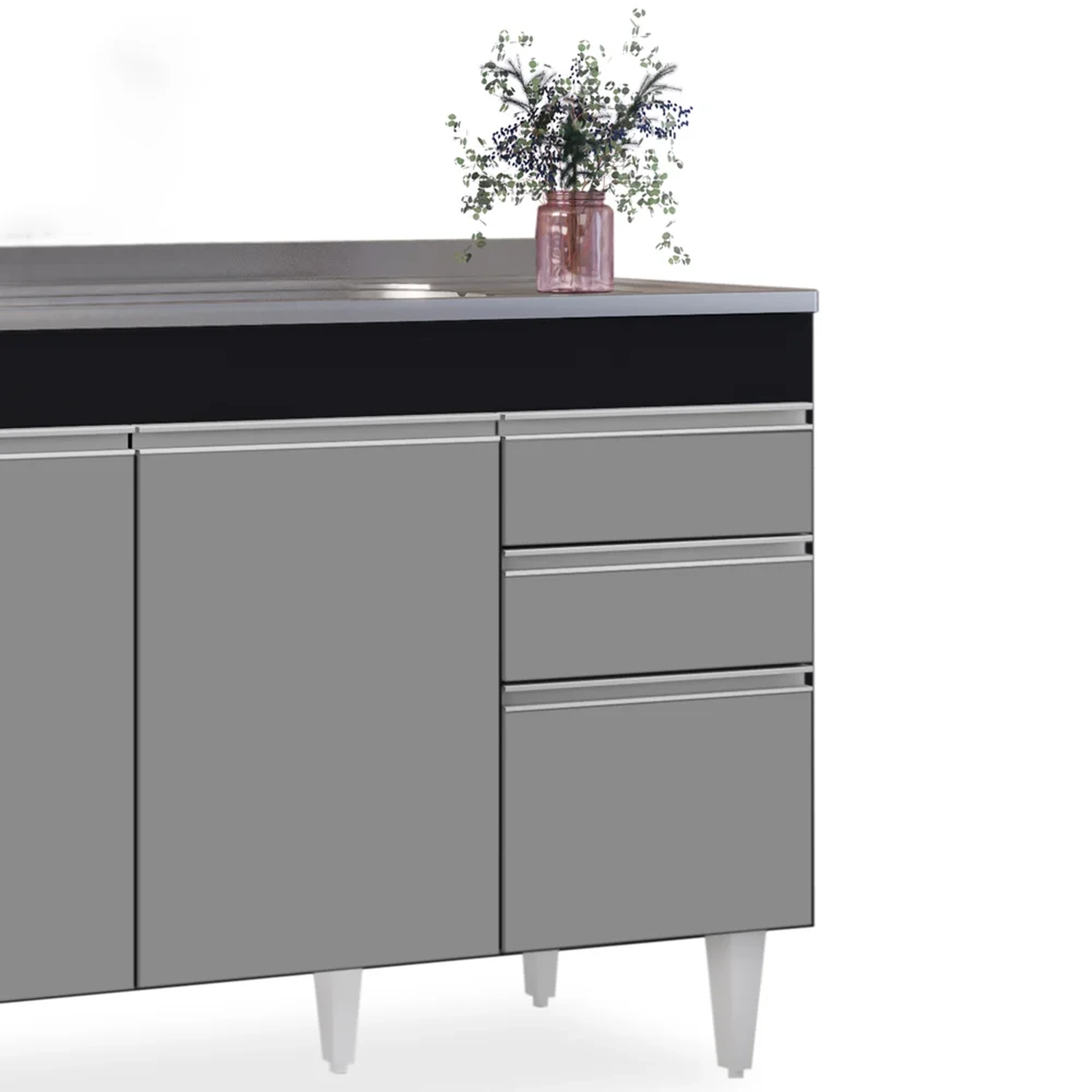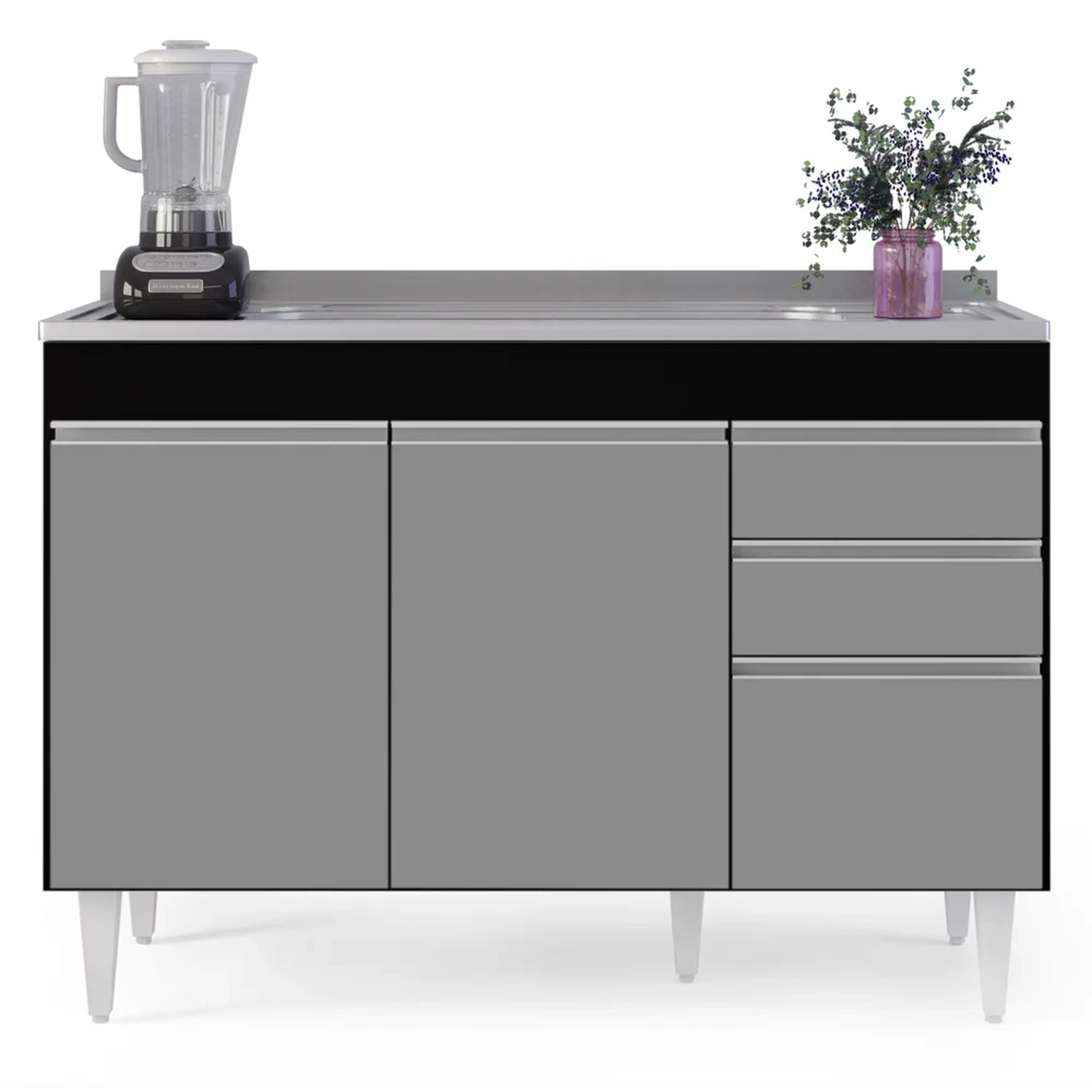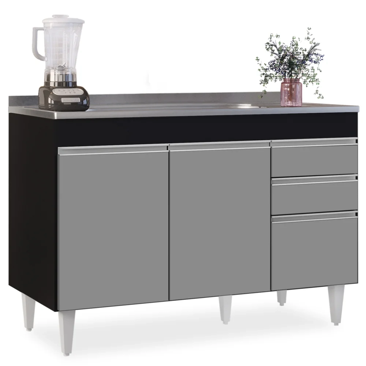 Procurando funcionalidade para sua cozinha? Vem conhecer o Balcão Gabinete com Pia Inox 120cm Michigan Preto/Cinza, da Lumil!