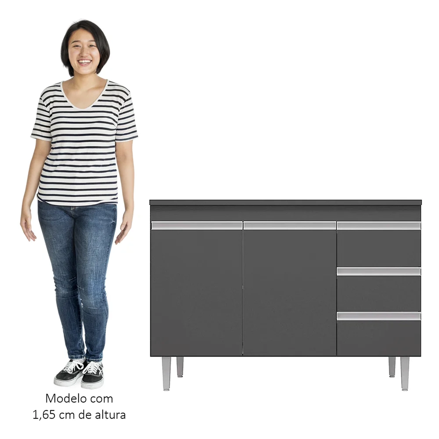 Se você está procurando um balcão compacto, prático e funcional para a sua cozinha o Balcão Gabinete Para Pia 100cm com Tampo 2 Portas Andréia Cinza, da AJL Móveis é perfeito!