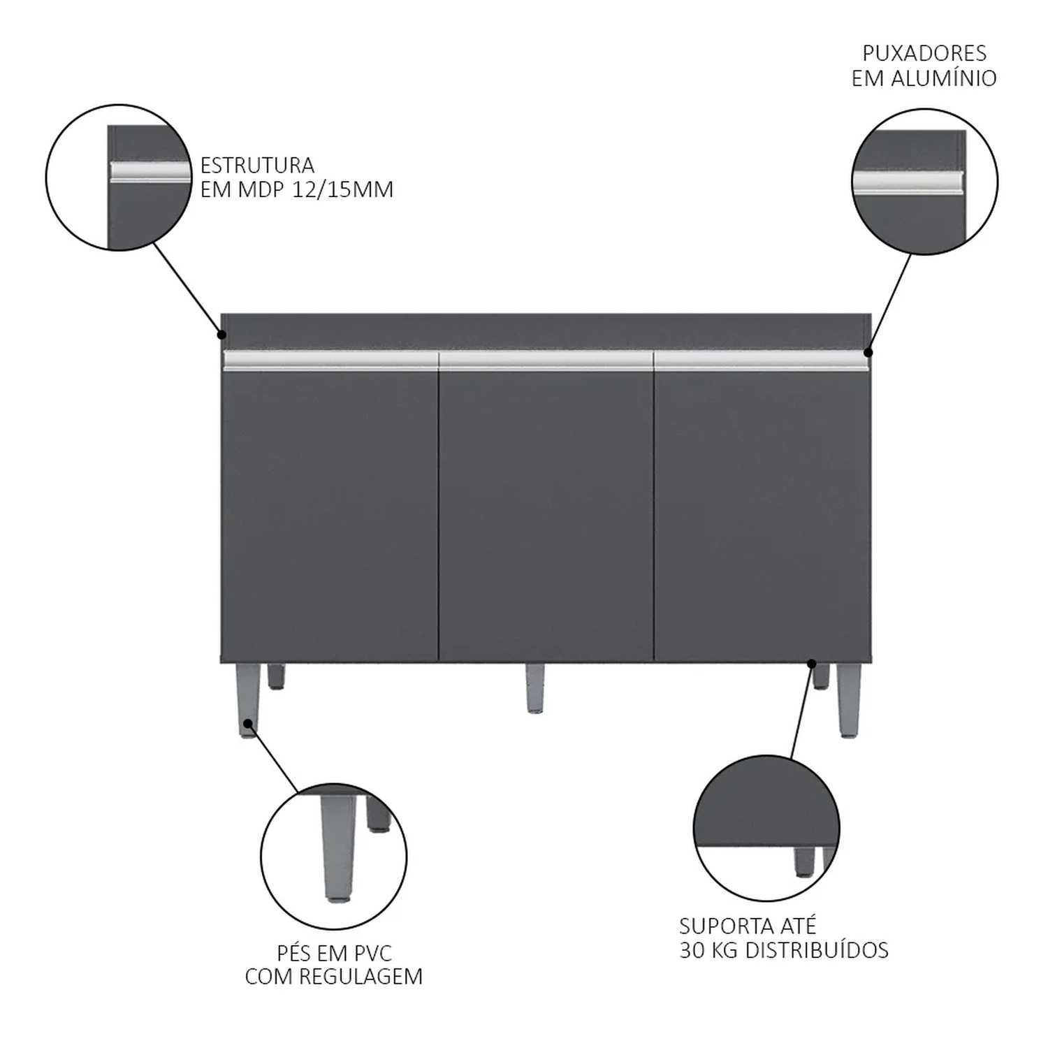 Se você está procurando um balcão que seja resistente, bonito e funcional, o Balcão Gabinete Para Pia 120cm 3 Portas Sem Tampo Manu Cinza, da AJL é uma ótima opção, confira!