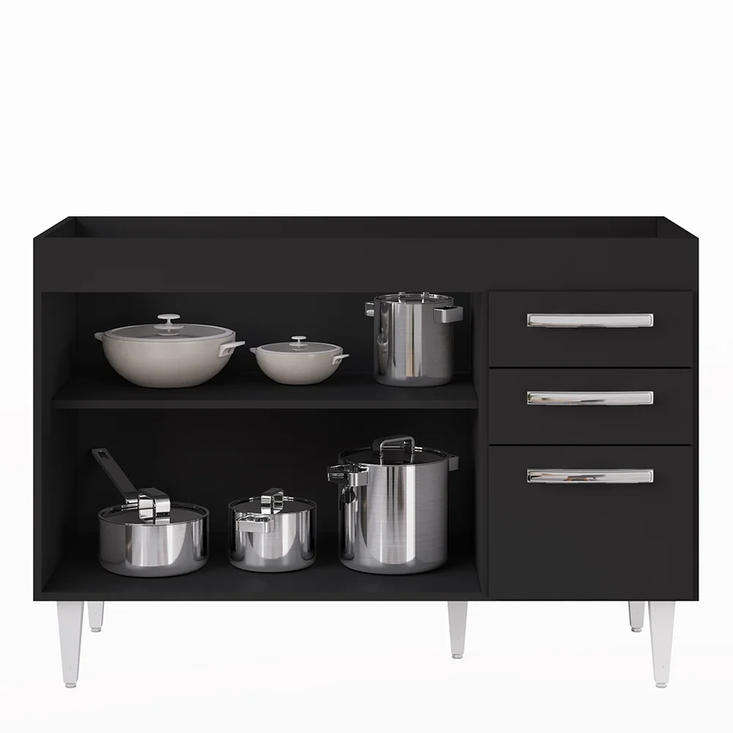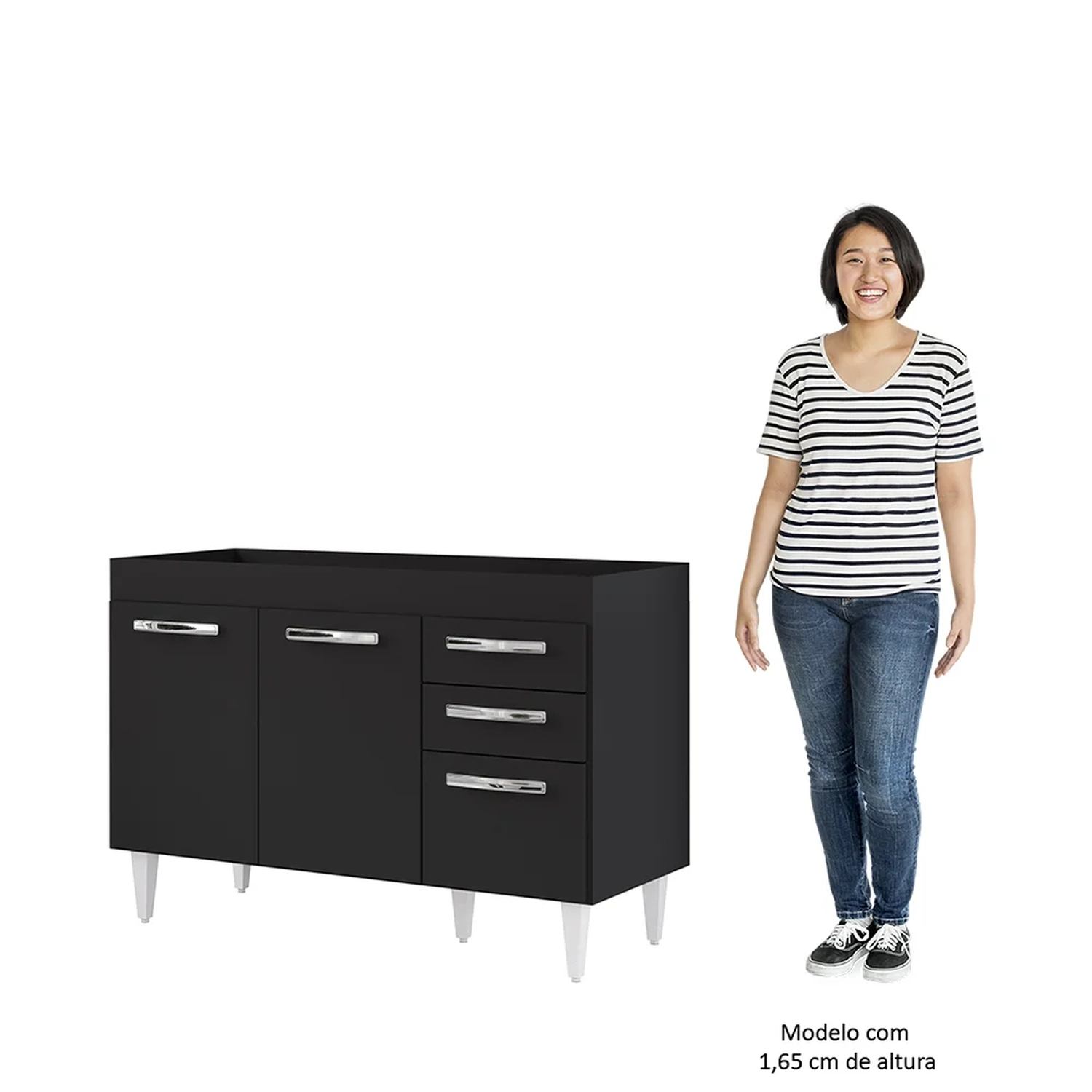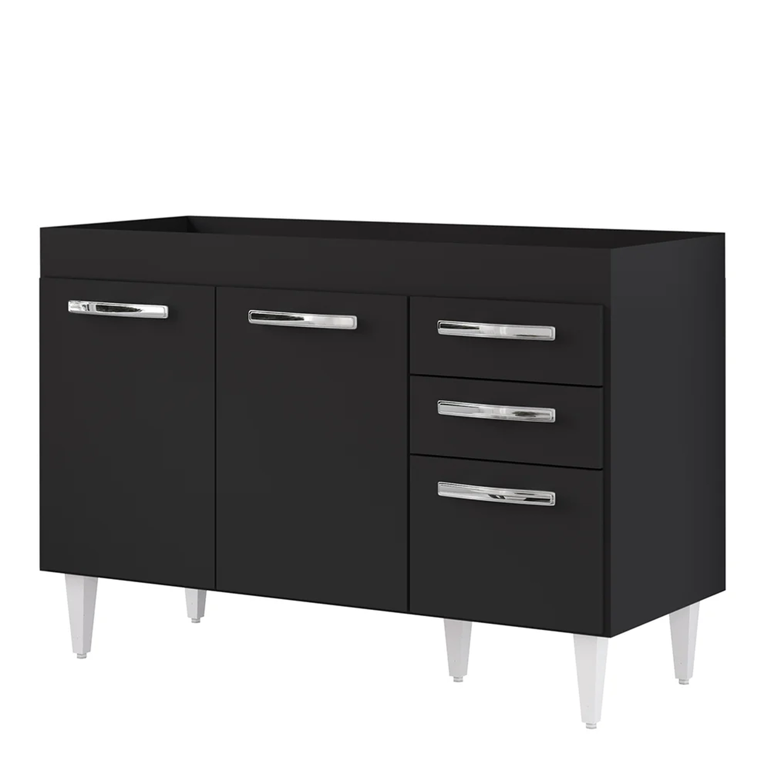 Na hora de escolher o móvel que vai compor o ambiente é preciso estar atento, afinal com cozinhas cada vez menores, deve ser compacto e funcional assim como o Balcão Gabinete Para Pia 120cm 3 Portas Sem Tampo Suécia Preto, da Lumil.
