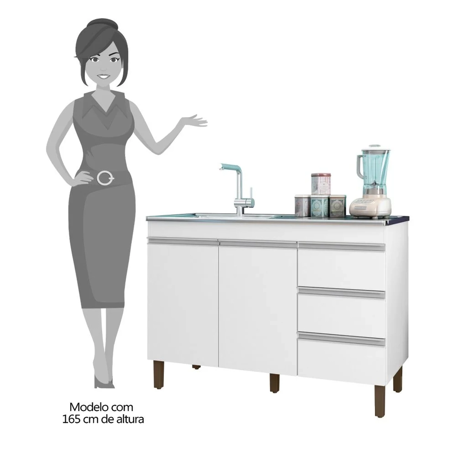 O Balcão é produzido em MDP de 15mm, um material de alta qualidade, ele tem acabamento em pintura UV que protege a superfície e é super moderno. O fundo é em MDF 2,8mm garantindo a estabilidade e a firmeza do móvel. O Balcão tem 2 portas com dobradiças metálicas, que abrem e fecham com facilidade e sem ruídos. Conta com 3 gavetas e as corrediças são metálicas, que deslizam suavemente e oferecem um ótimo espaço para guardar seus utensílios e mantimentos. Os puxadores são em PVC, um material resistente e fácil de limpar. Possui uma prateleira em MDP, que divide o espaço interno e permite uma melhor organização. O Balcão Gabinete tem pés reguláveis, que permitem ajustar a altura do móvel de acordo com o seu piso e a sua preferência. Ele é ideal para você que quer renovar a sua Cozinha com praticidade e estilo.
