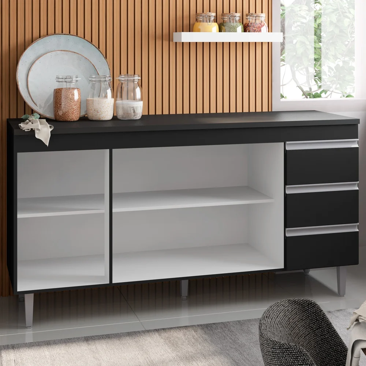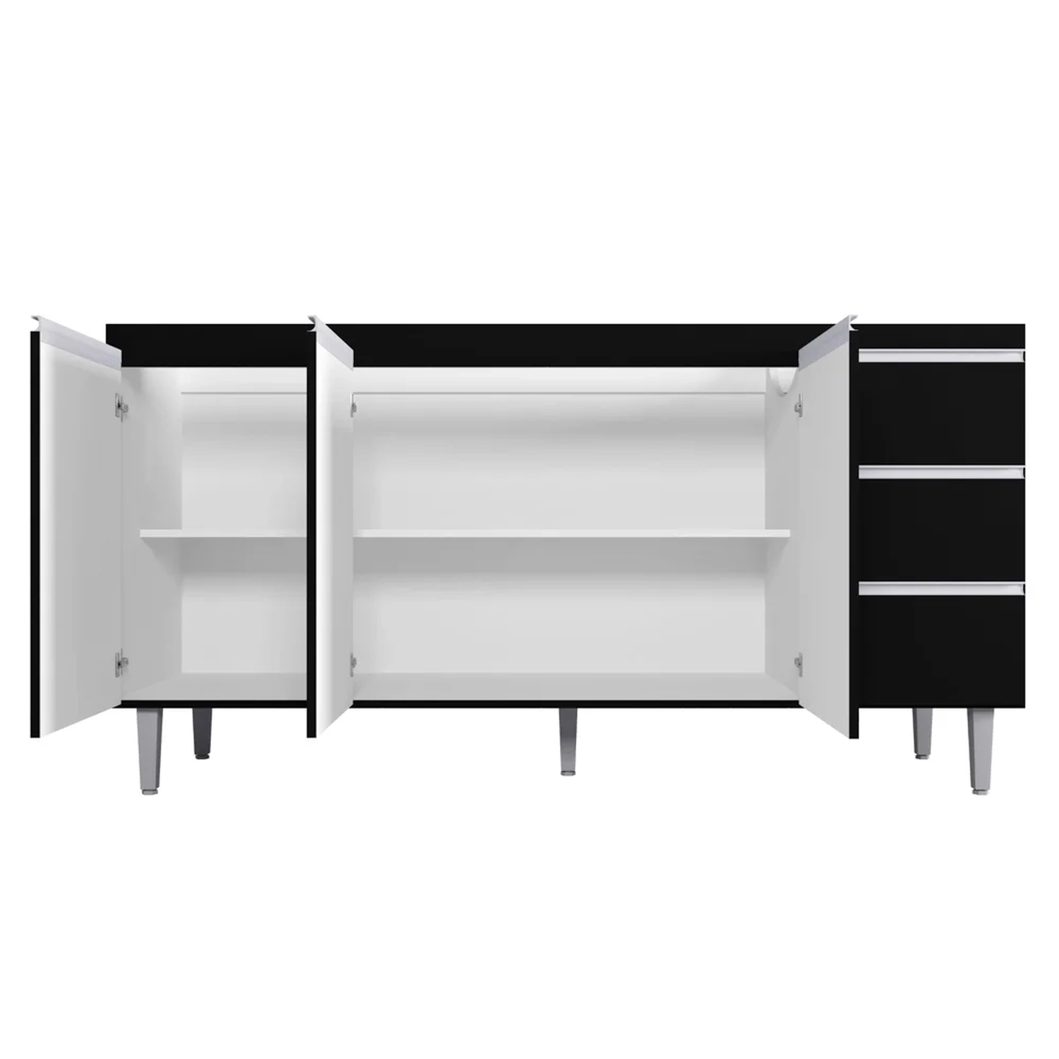 Se você está procurando um balcão compacto, prático e funcional para a sua cozinha o Balcão Gabinete Para Pia 160cm com Tampo 3 Portas Andréia Preto, da AJL Móveis é perfeito!