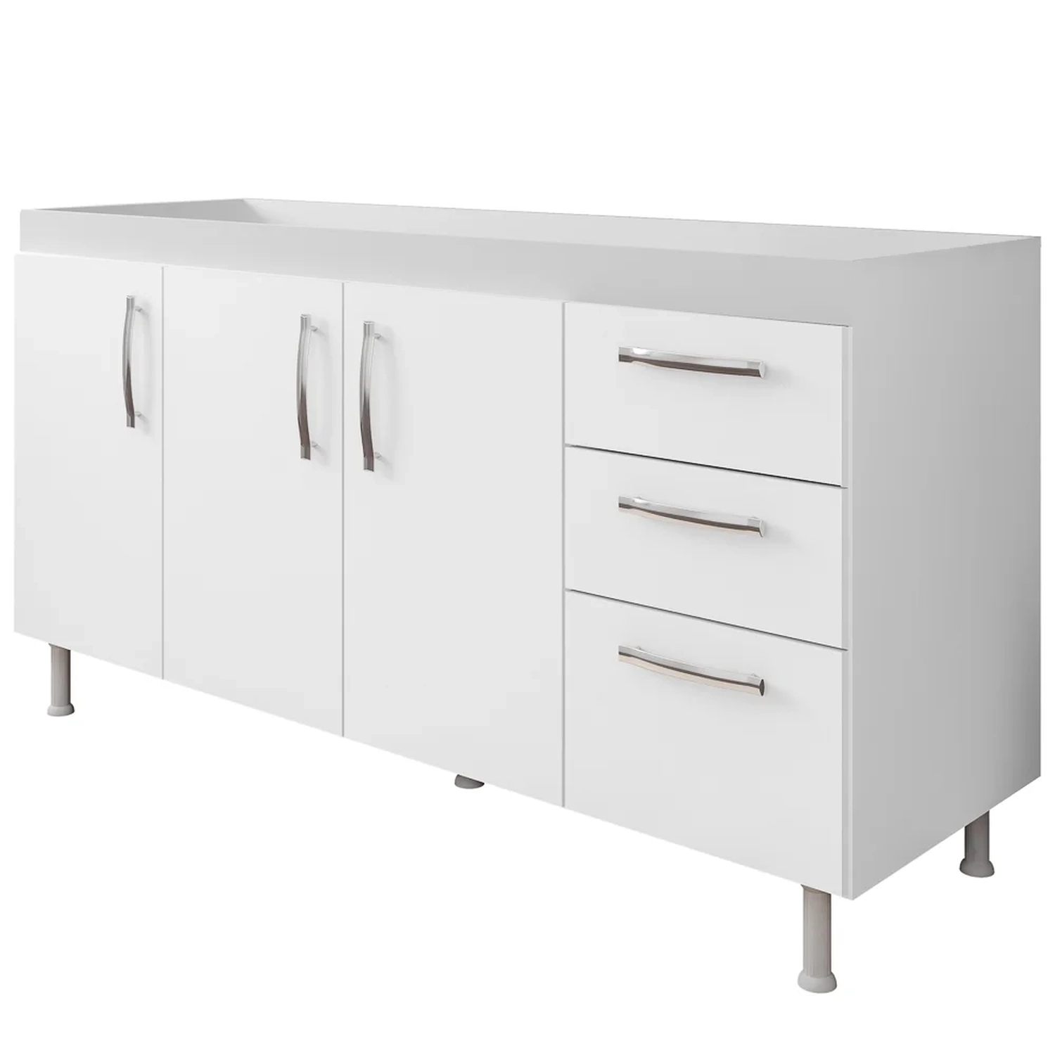 O Balcão Gabinete de Pia 160cm Nathan, é uma excelente peça para ser utilizada na sua cozinha e organizar seus utensílios. Conta com estrutura em MDP/MDF, 3 portas grandes convencionais com amplo espaço interno e 3 gavetas para melhor auxiliar nessa tarefa, além disso, seu acabamento em BP garante maior durabilidade e resistência. Outro diferencial são os pés reguláveis que facilitam a posição do móvel. Um charme, não é mesmo?