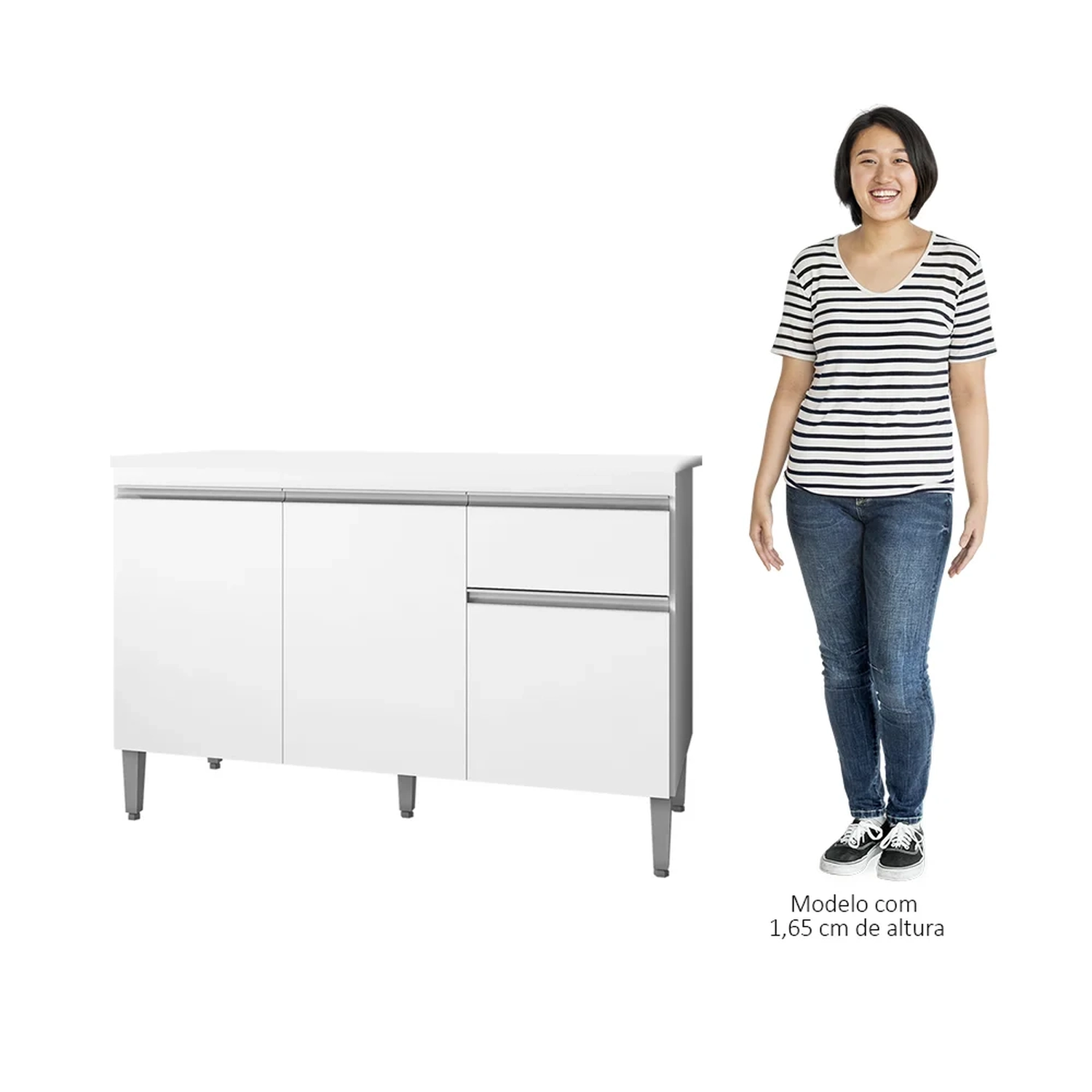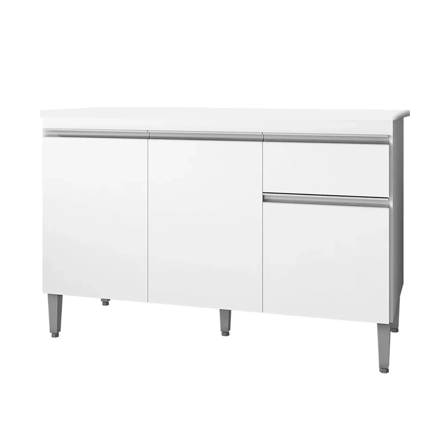 Este é o balcão ideal para a sua cozinha, compacto, prático e funcional confira o Balcão Gabinete Para Pia Com Tampo 120cm 3 Portas e 1 Gaveta Tatiane Branco, da AJL Móveis!