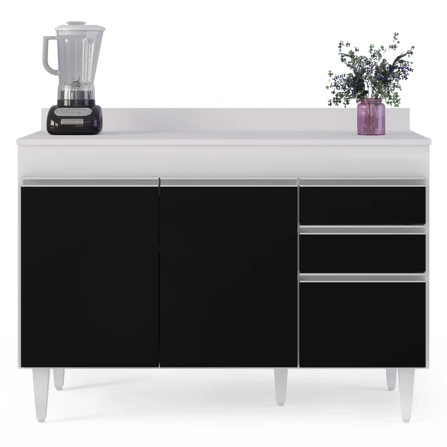 Procurando praticidade para sua cozinha? Vem conhecer o Balcão Gabinete para pia com Tampo 120cm Michigan Branco/Preto, da Lumil!