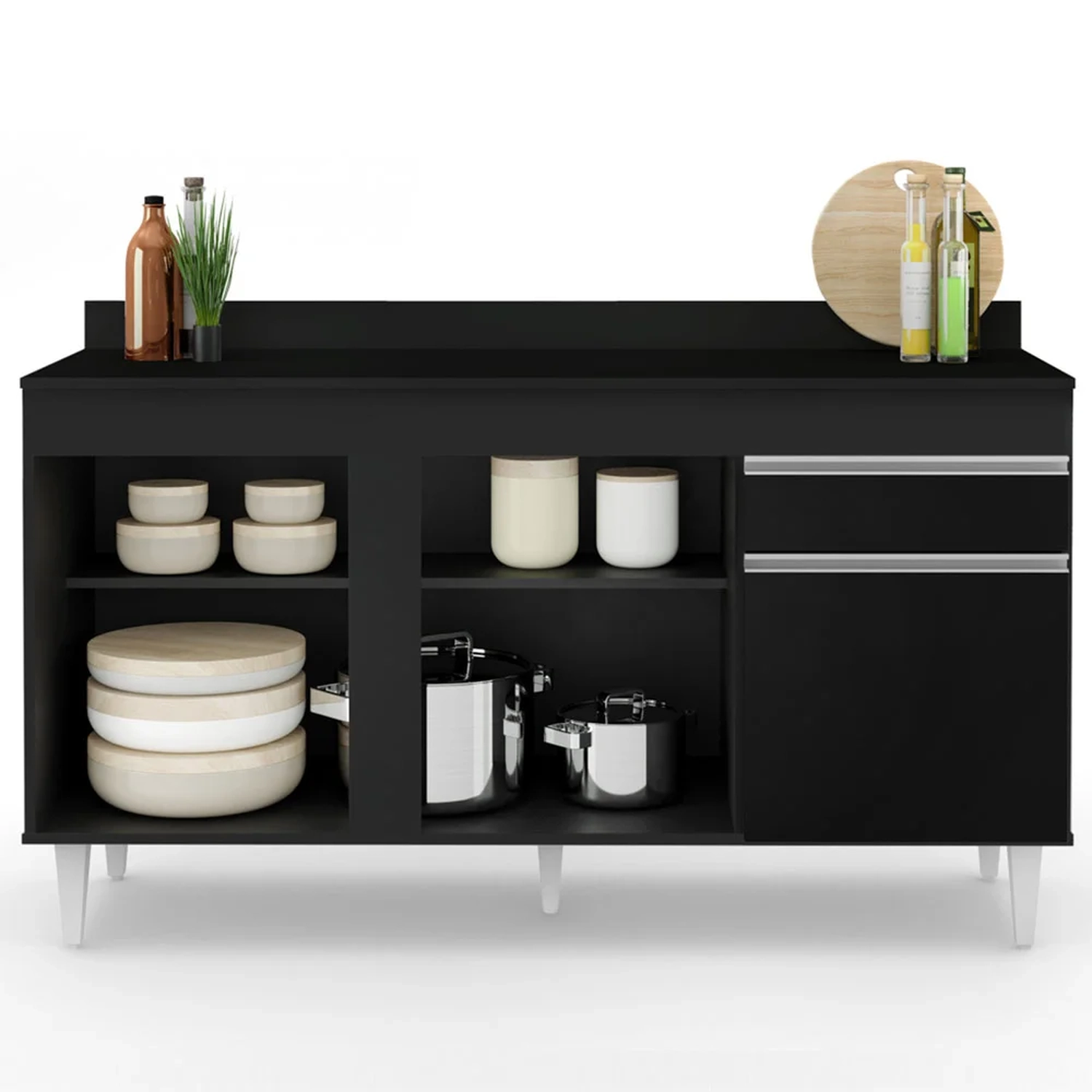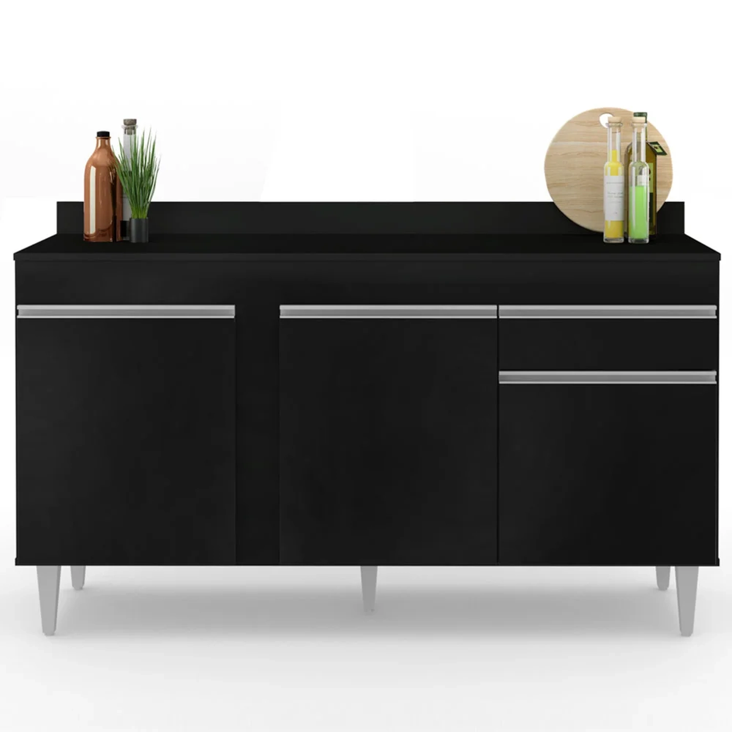 O Balcão Gabinete Para Pia 150cm com Tampo 3 Portas 1 Gaveta Dakota Preto, da Lumil, encaixa perfeitamente na sua cozinha, confira os detalhes!