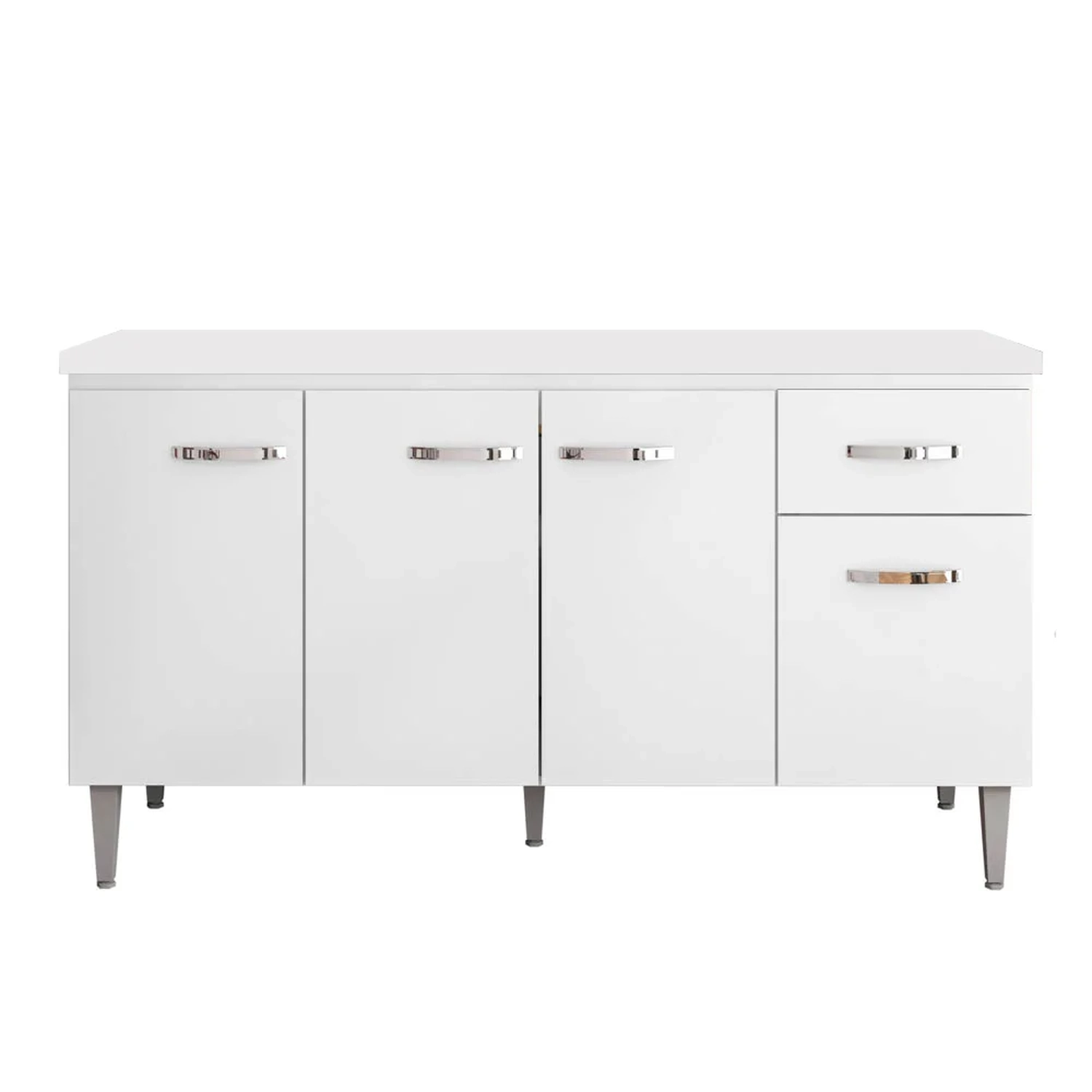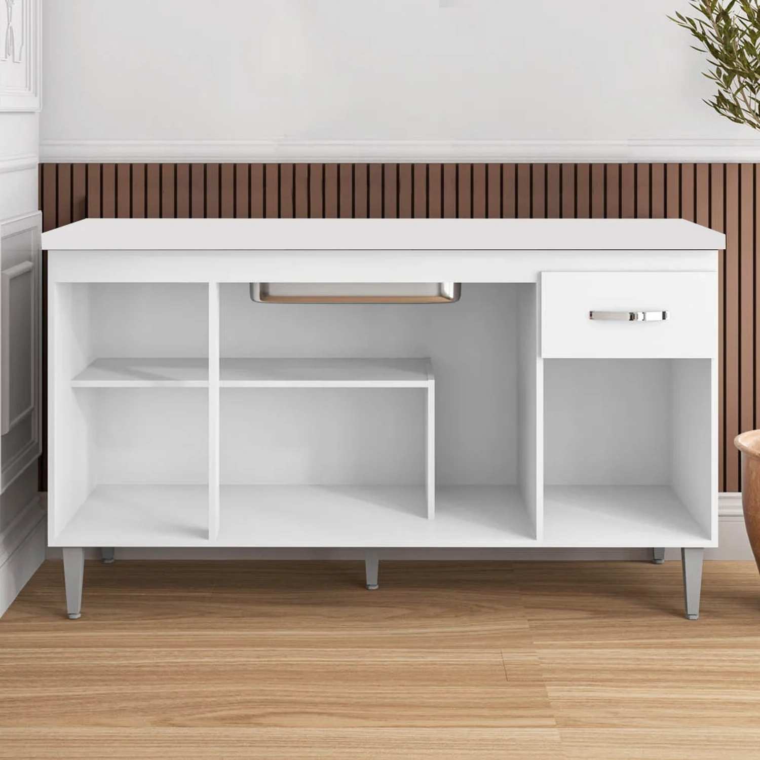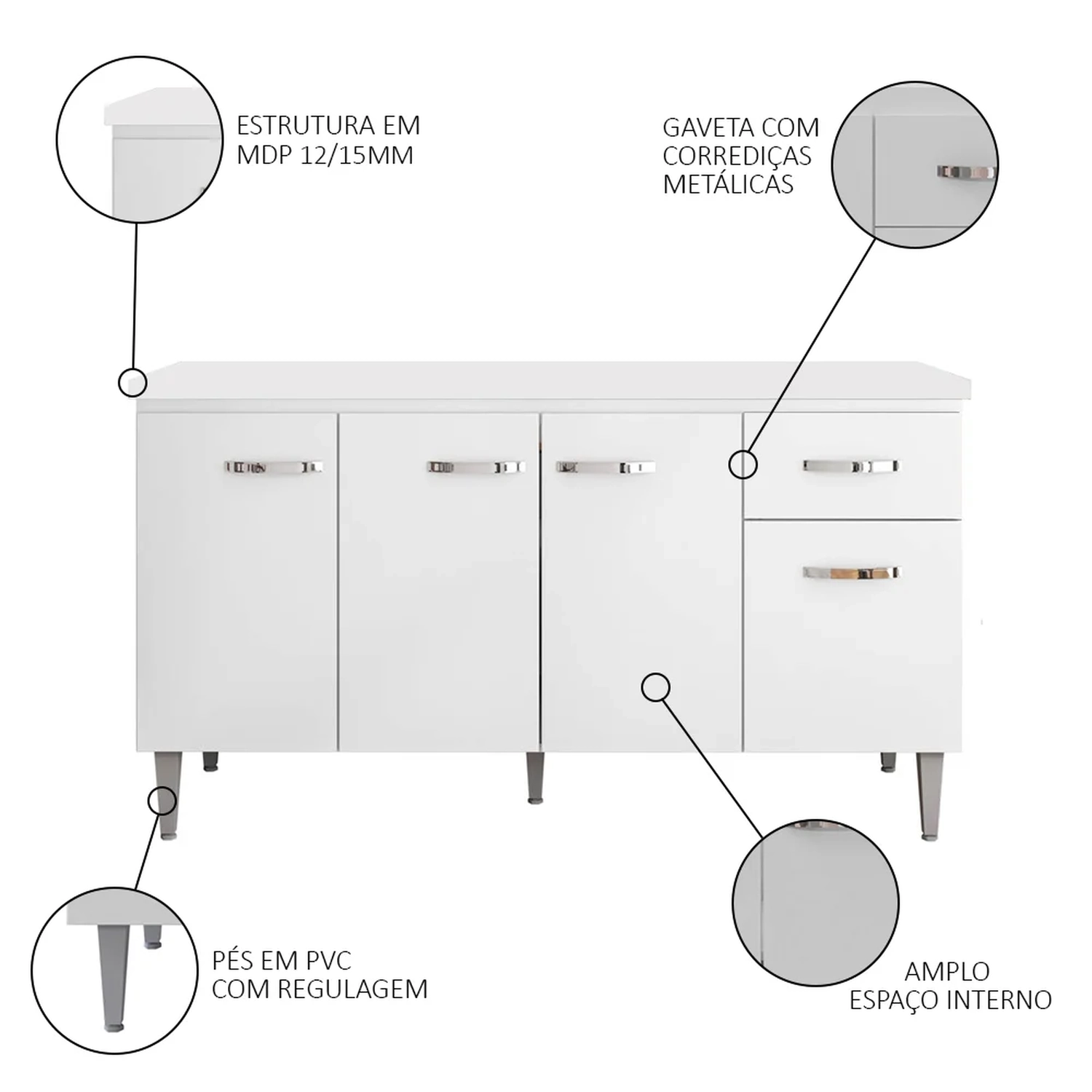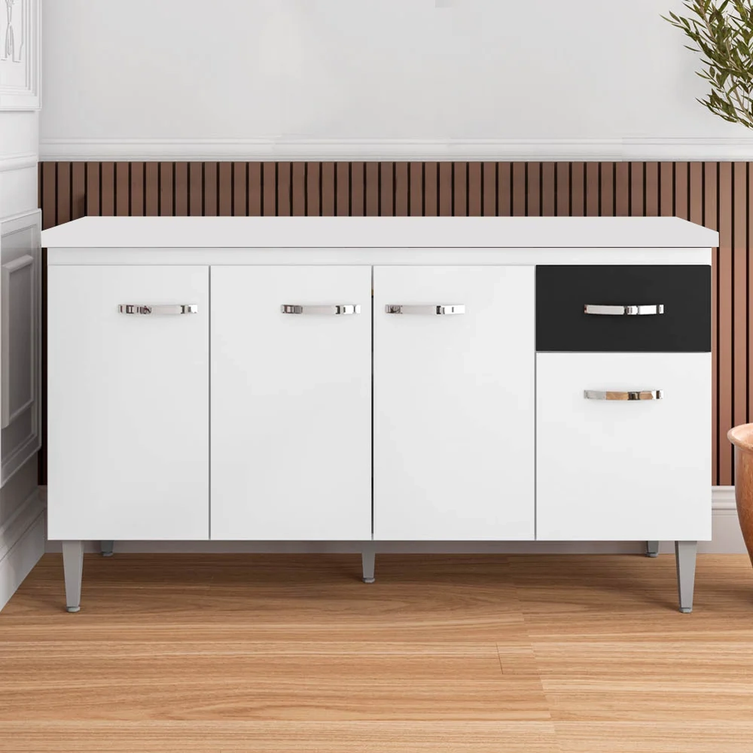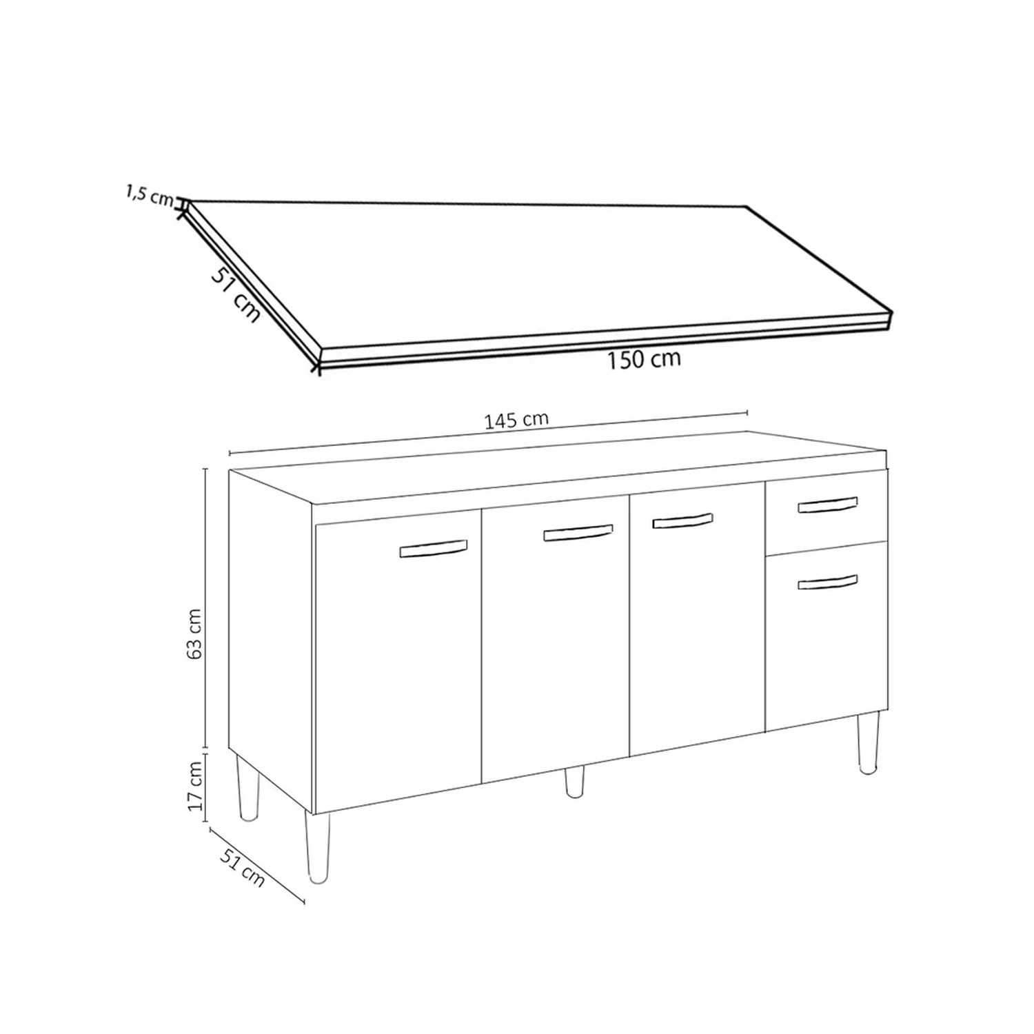 Conheça o Balcão Gabinete Com Tampo 150cm 4 Portas e 1 Gaveta Gabriela Branco, da AJL. Prático e funcional, para auxiliar no seu dia a dia!