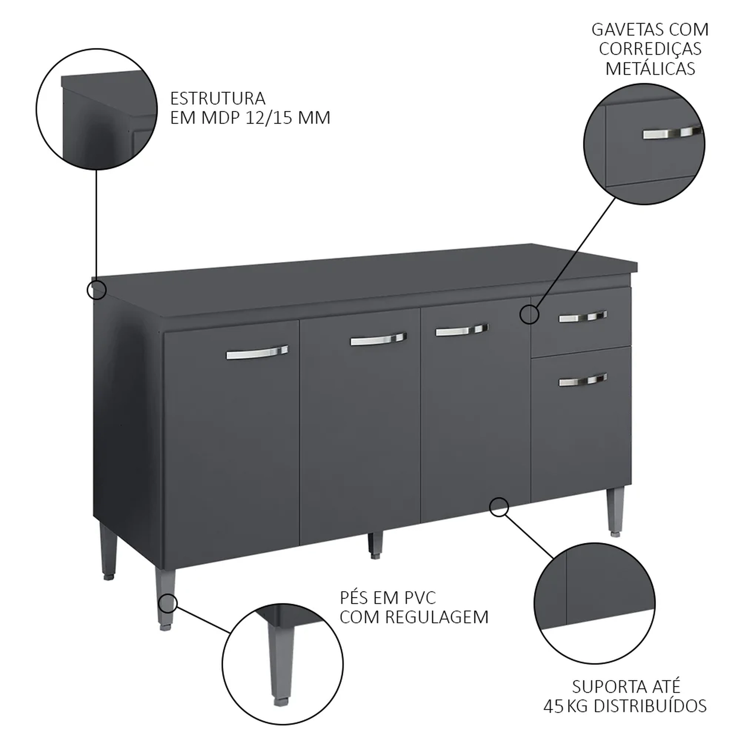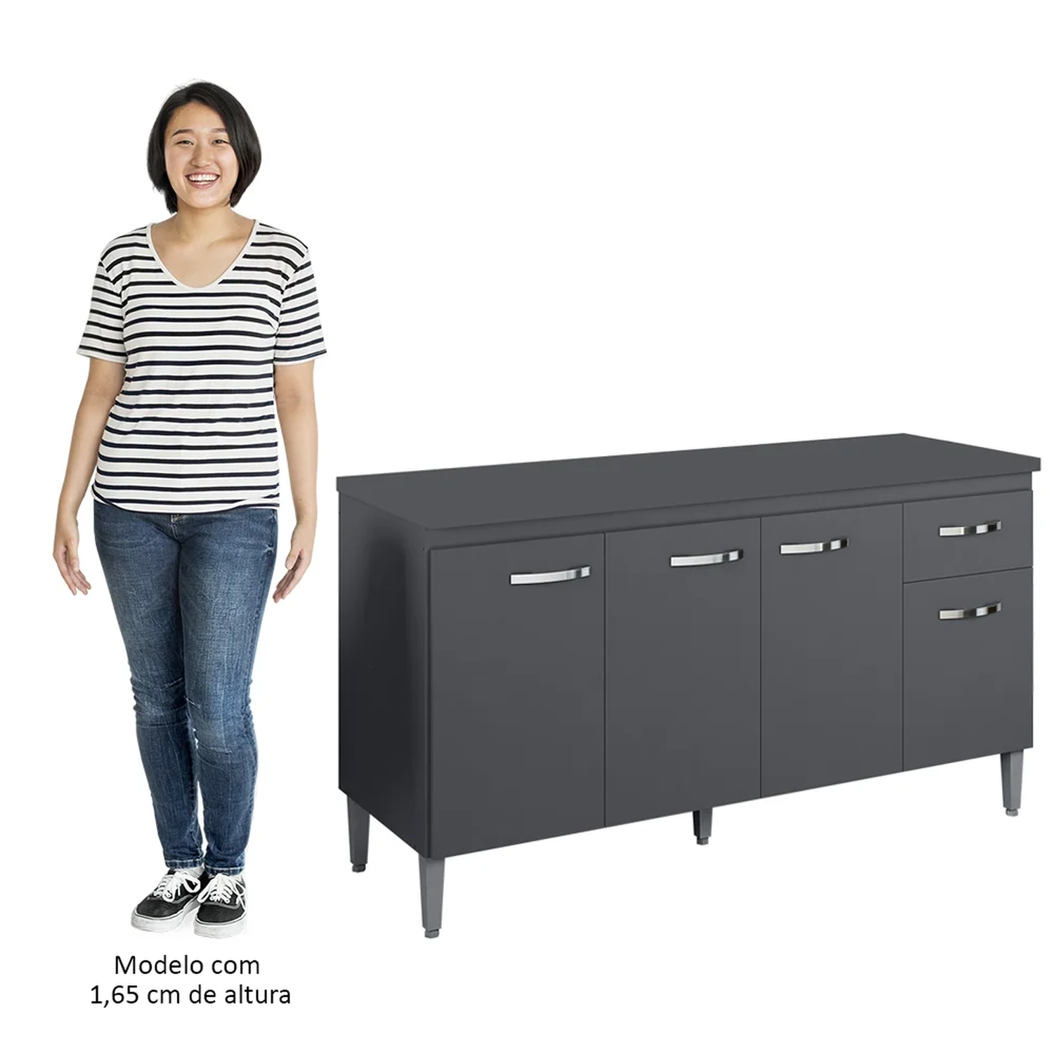 Conheça o Balcão Gabinete Com Tampo 150cm 4 Portas e 1 Gaveta Gabriela Cinza, da AJL. Prático e funcional, para auxiliar no seu dia a dia!