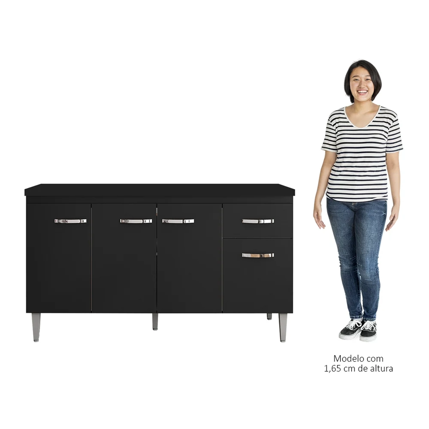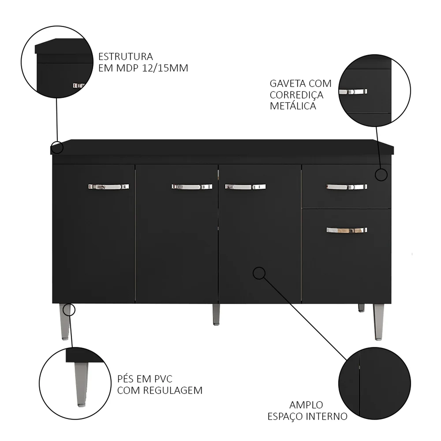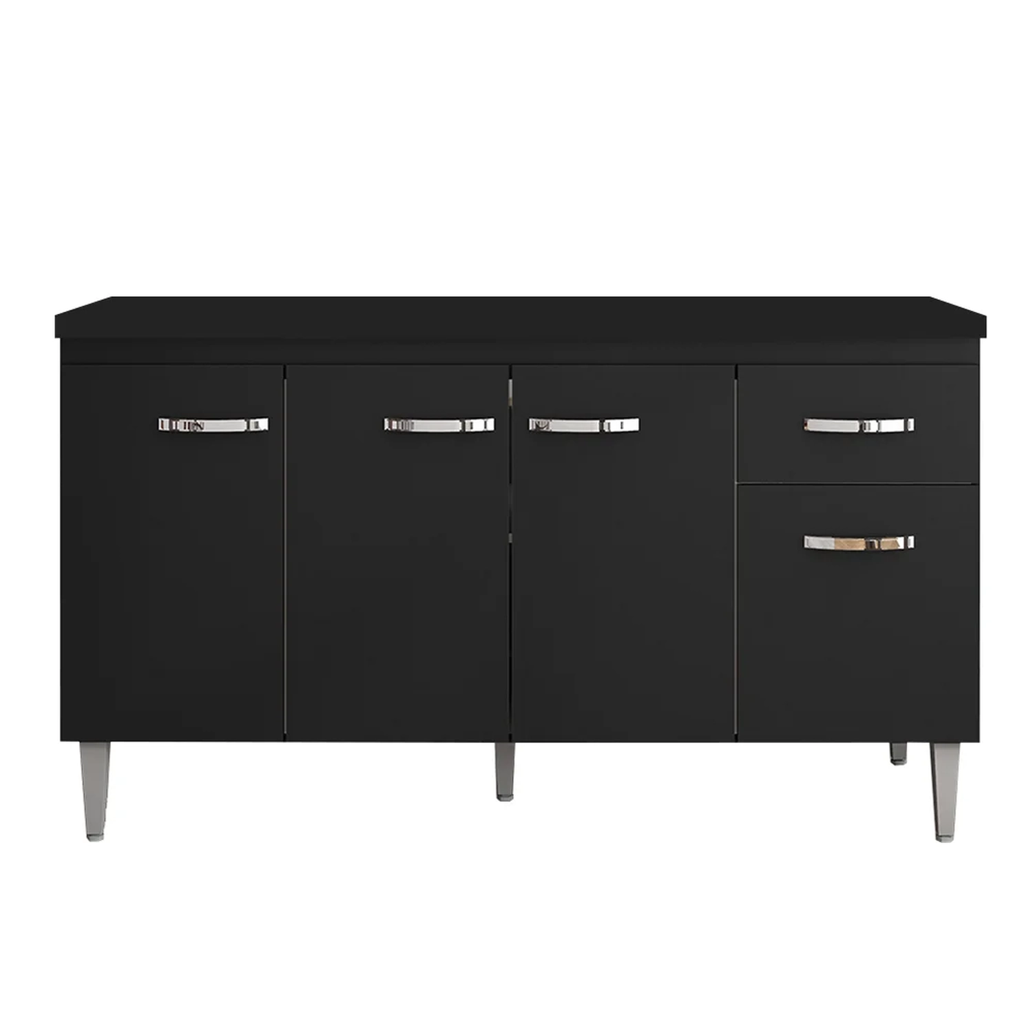 Conheça o Balcão Gabinete Com Tampo 150cm 4 Portas e 1 Gaveta Gabriela Preto, da AJL. Prático e funcional, para auxiliar no seu dia a dia!