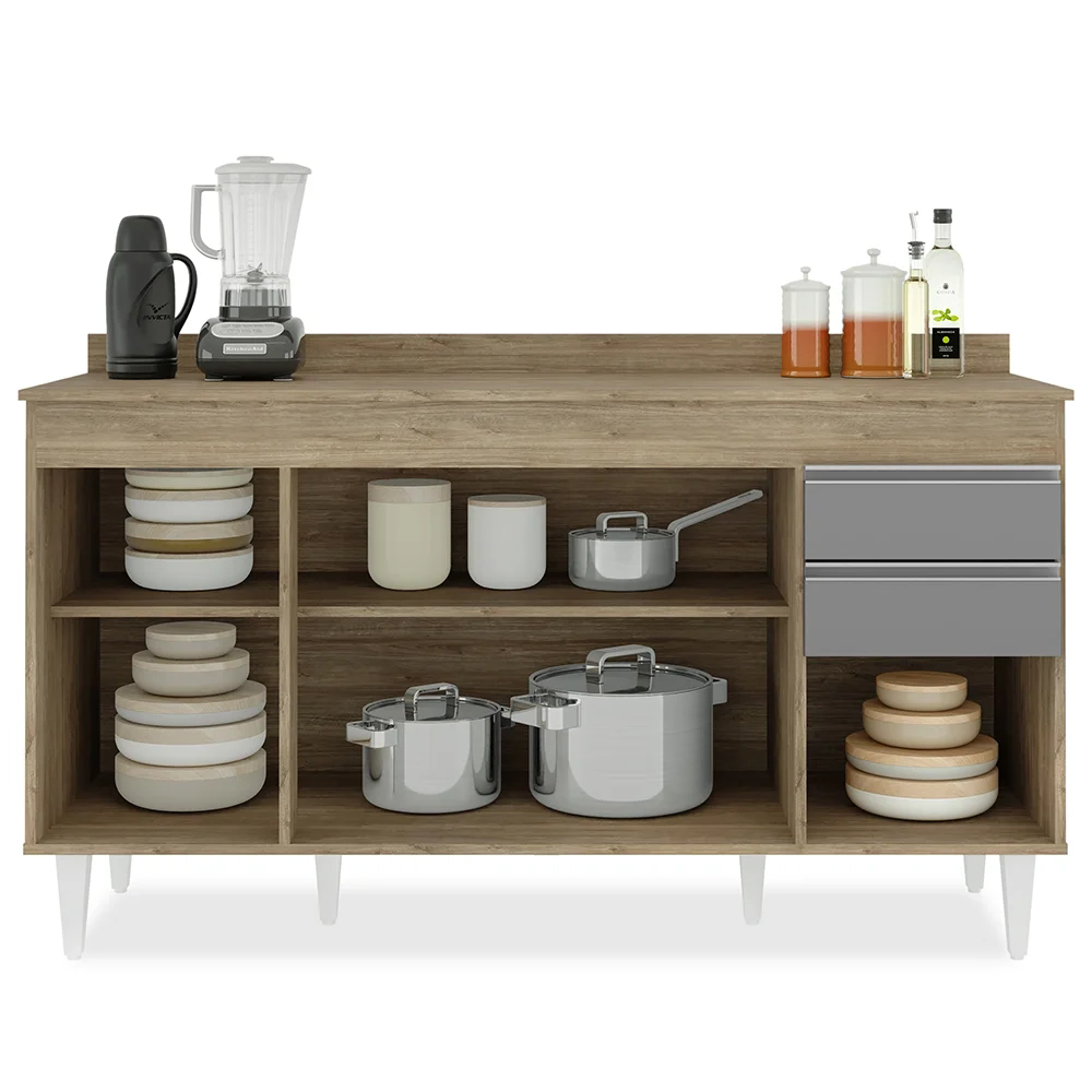 Quanto ao acabamento e estrutura também não há o que questionar, porque é fabricado em MDP 15mm com acabamento BP e os puxadores em alumínio modelo cava dão um toque de modernidade. Para completar, o Tampo em MDP 15mm agrega ainda mais utilidade, uma vez que você pode fazer uso de itens decorativos ou até criar aquele cantinho do café, deixando o ambiente muito mais bonito, até porque o coração da casa merece esse cuidado.