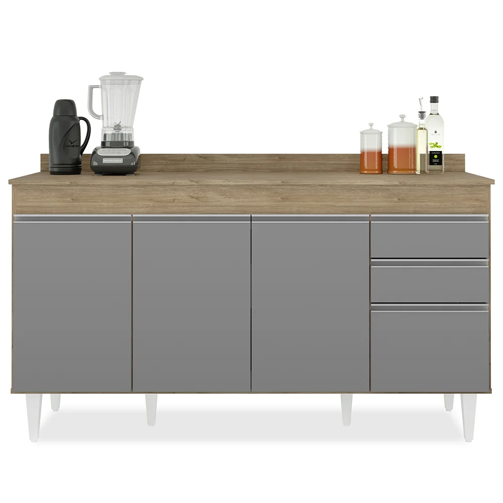 Praticidade e funcionalidade são as palavras que definem o Balcão Gabinete com Tampo 150cm 4 portas 2 gavetas Marrocos Castanho/Cinza da Lumil Móveis. Afinal, são as características indispensáveis para quem busca uma rotina na cozinha de um jeito mais versátil.