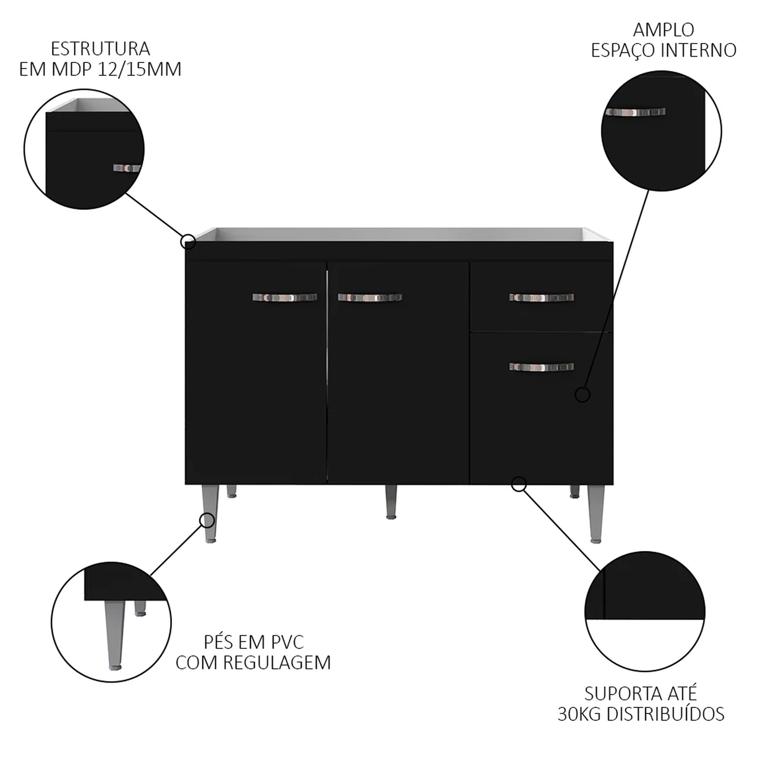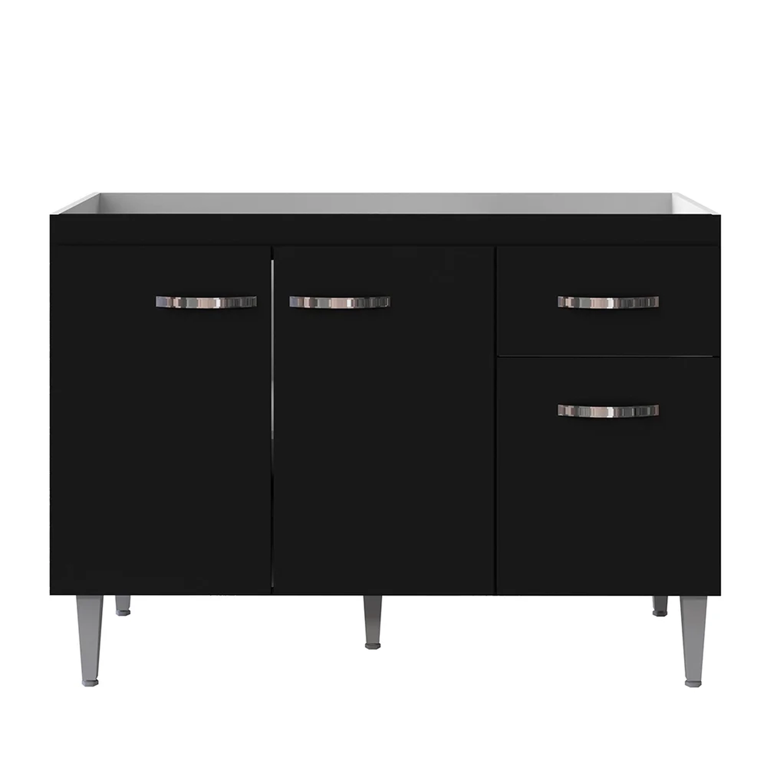 Conheça o Balcão Gabinete Para Pia Sem Tampo 120cm 3 Portas e 1 Gaveta Gabriela Preto, da AJL. Prático e funcional, para auxiliar no seu dia a dia!