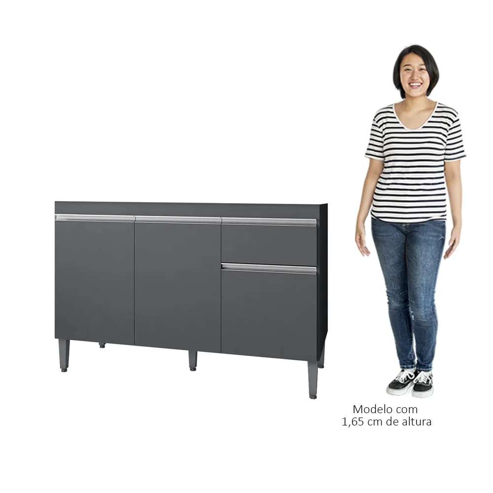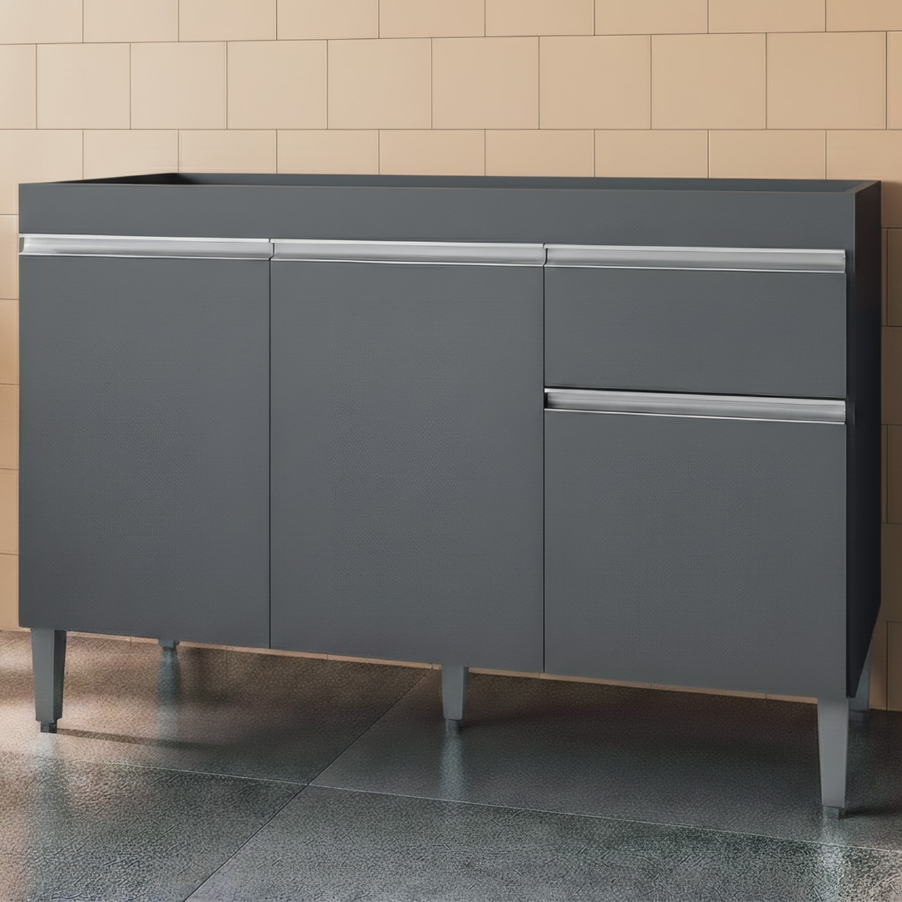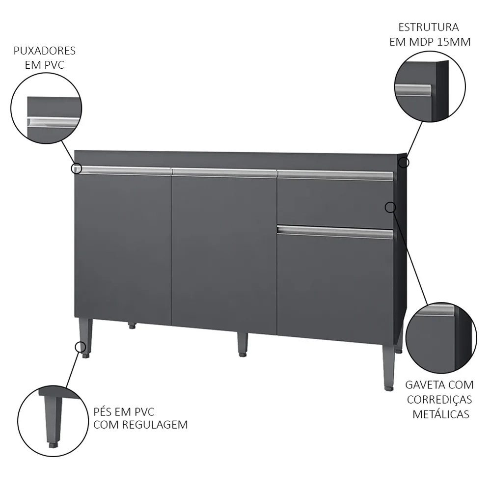 Este é o balcão ideal para a sua cozinha, compacto, prático e funcional confira o Balcão Gabinete Para Pia Sem Tampo 120cm 3 Portas e 1 Gaveta Tatiane Cinza, da AJL Móveis!