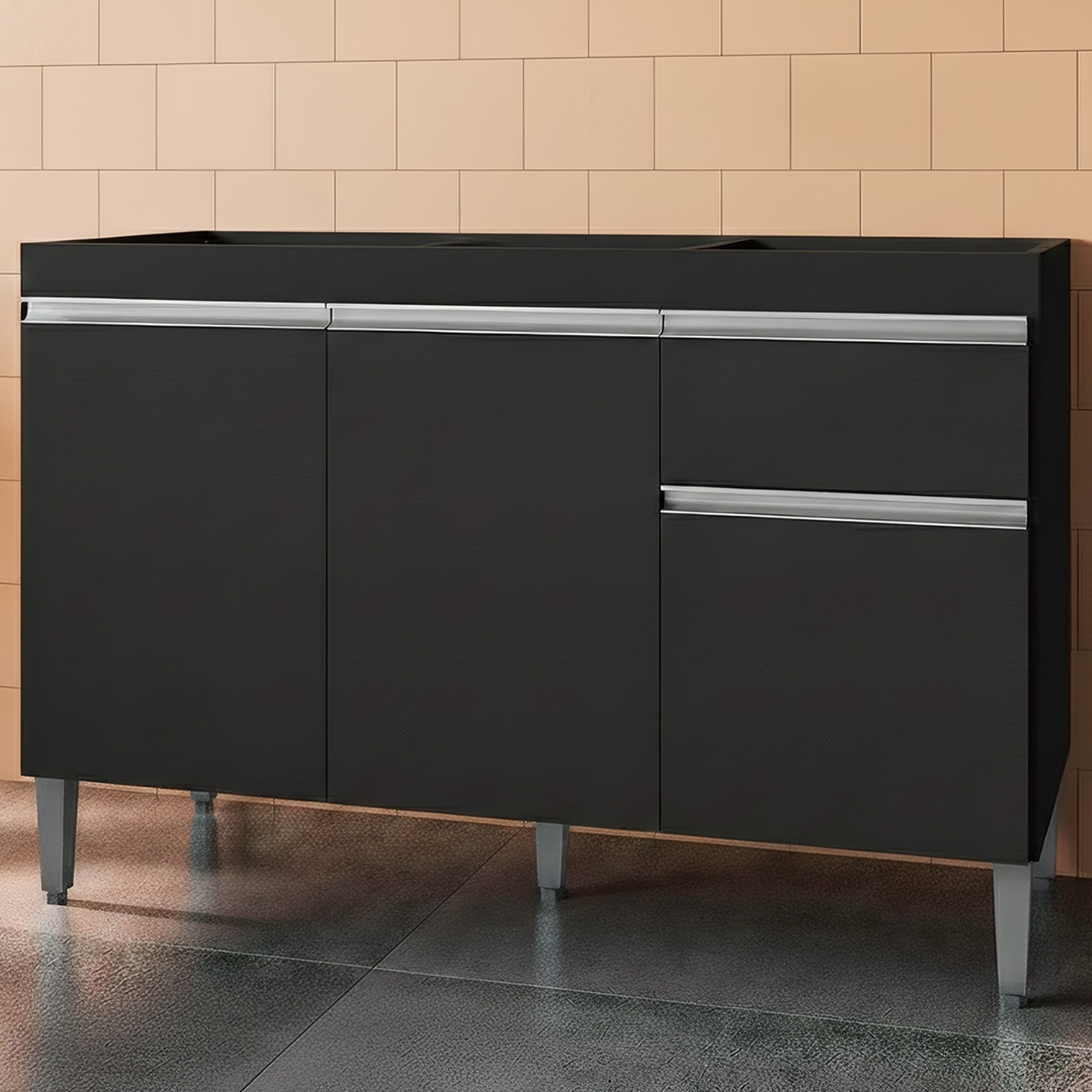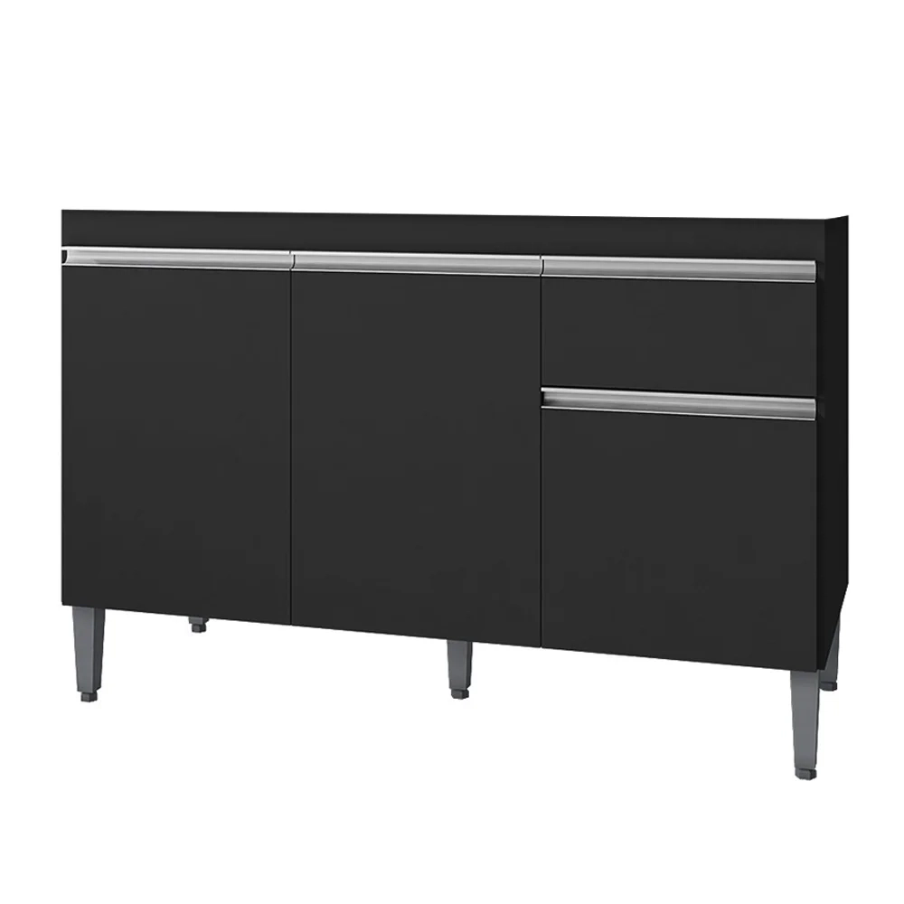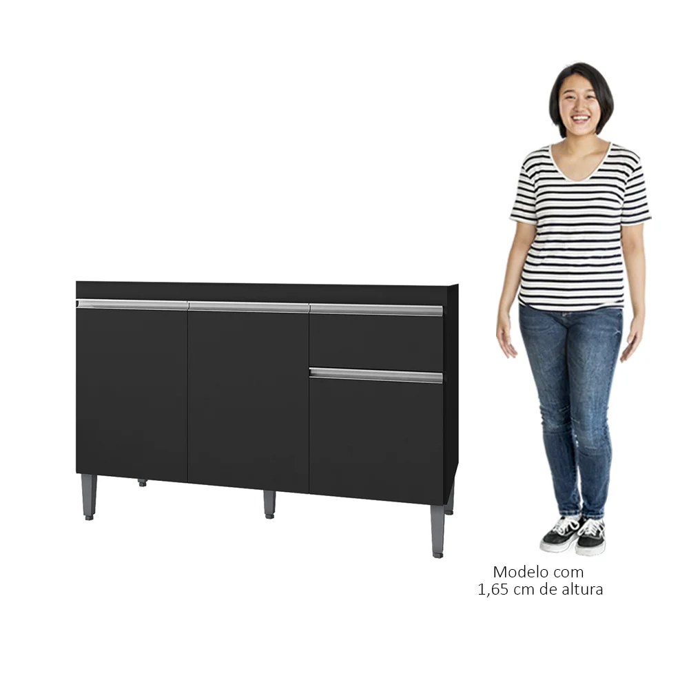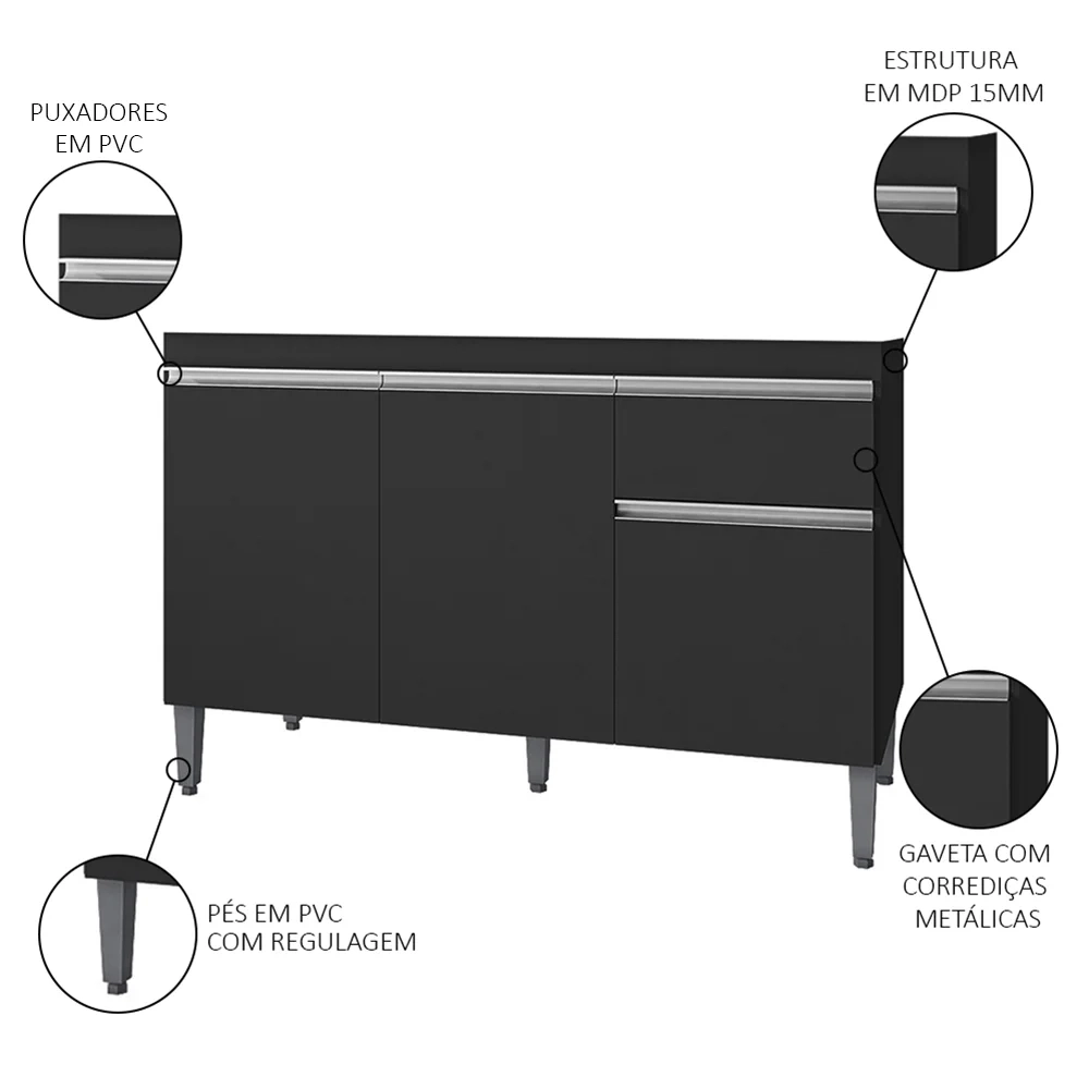 Este é o balcão ideal para a sua cozinha, compacto, prático e funcional confira o Balcão Gabinete Para Pia Sem Tampo 120cm 3 Portas e 1 Gaveta Tatiane Preto, da AJL Móveis!