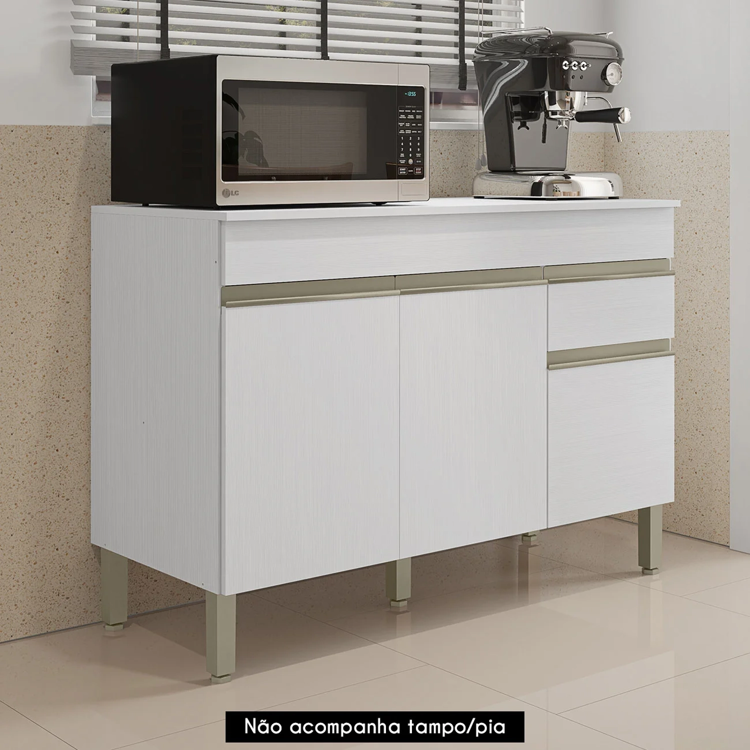 Conheça agora o Balcão Gabinete para Pia sem Tampo 120cm Lina Z06 Supremo, da Mpozenato, um móvel prático e funcional para a sua Cozinha.
