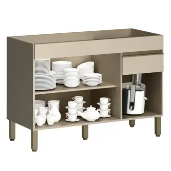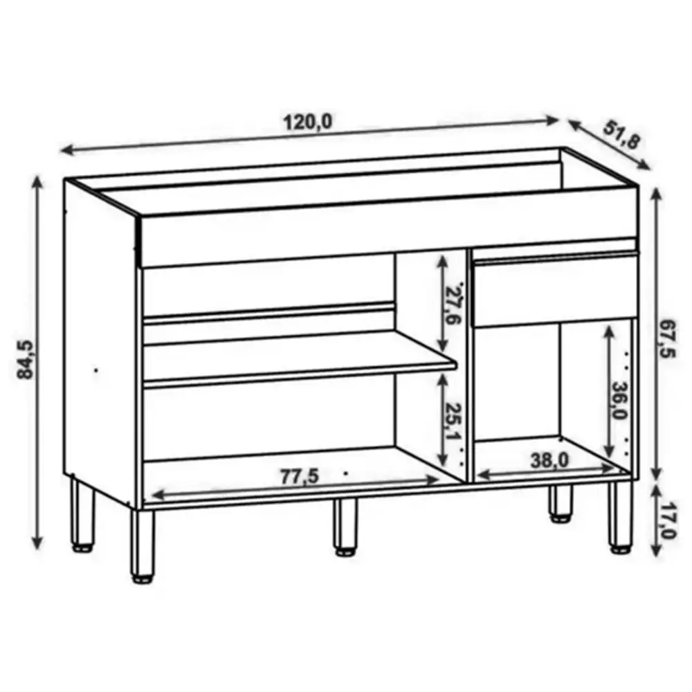 O Balcão Gabinete possui espaço para pia ou tampo de 120cm, uma gaveta e três portas, ele permite guardar utensílios e mantimentos de forma organizada e aproveitar o espaço da pia. O Balcão Para Pia tem um design moderno e pode combinar com diferentes estilos de decoração, além de lindo ele é feito de material resistente, portas com dobradiças 100% metálicas que garante mais segurança e qualidade ao produto, puxadores em perfil alumínio com pintura epóxi e prateleira interna que permitem melhor organização dos itens, aplicação de textura sensível ao toque e acabamento de pintura com secagem em luzes UV.