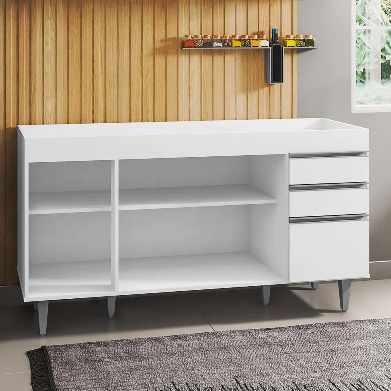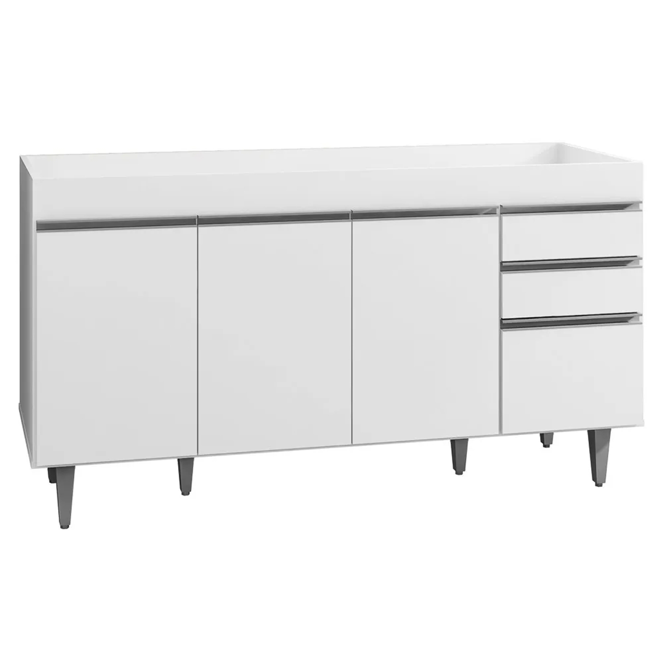 Praticidade e funcionalidade são as palavras que definem o Balcão de Cozinha Para Pia Sem Tampo 150cm 4 Portas 2 Gavetas Marrocos Branco, da Lumil. Afinal, são as características indispensáveis para quem busca uma rotina na cozinha de um jeito mais versátil.