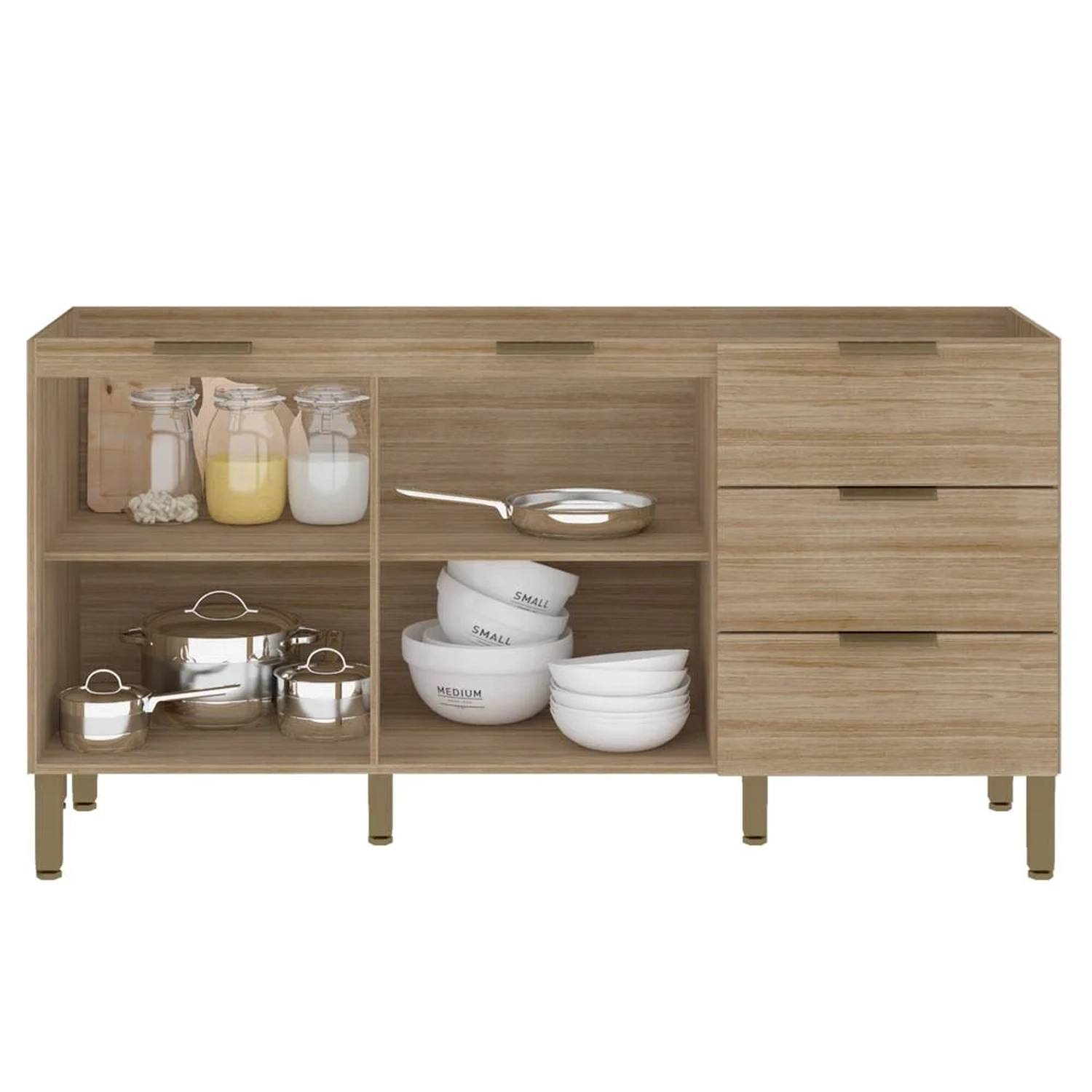 Que tal trazer mais funcionalidade e praticidade para a sua Cozinha? O Balcão Gabinete para Pia sem Tampo 160cm Charm Z06 Freijó, da Mpozenato, é a opção perfeita para você!
