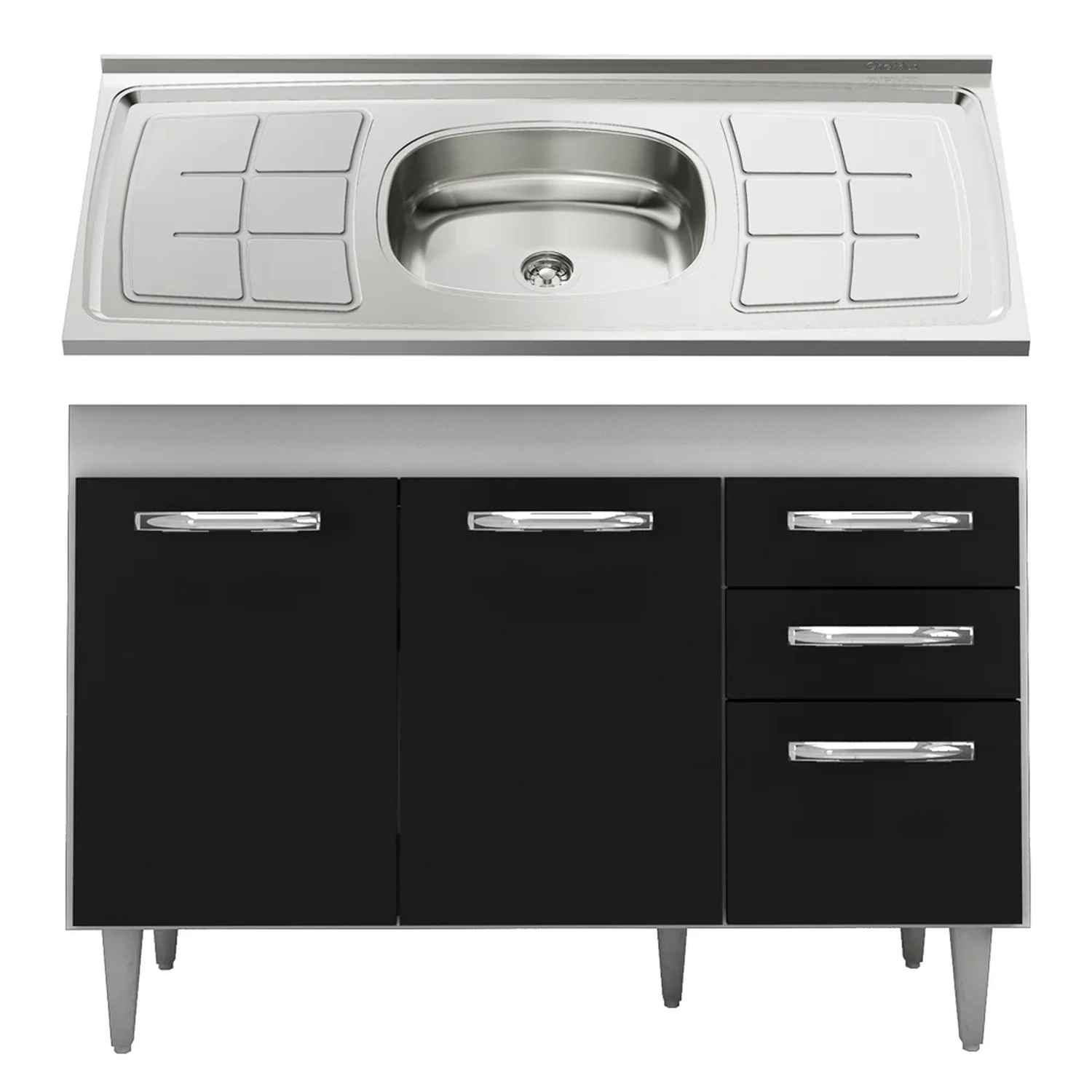 Com cozinhas cada vez menores, é preciso estar atento na hora de escolher o móvel que vai compor o ambiente, afinal, deve ser compacto e funcional, assim como o Balcão Gabinete de Pia Suécia, da Lumil Móveis. Com 120cm esse balcão conta com 3 portas e 2 gavetas que são excelentes para organizar seus utensílios.
