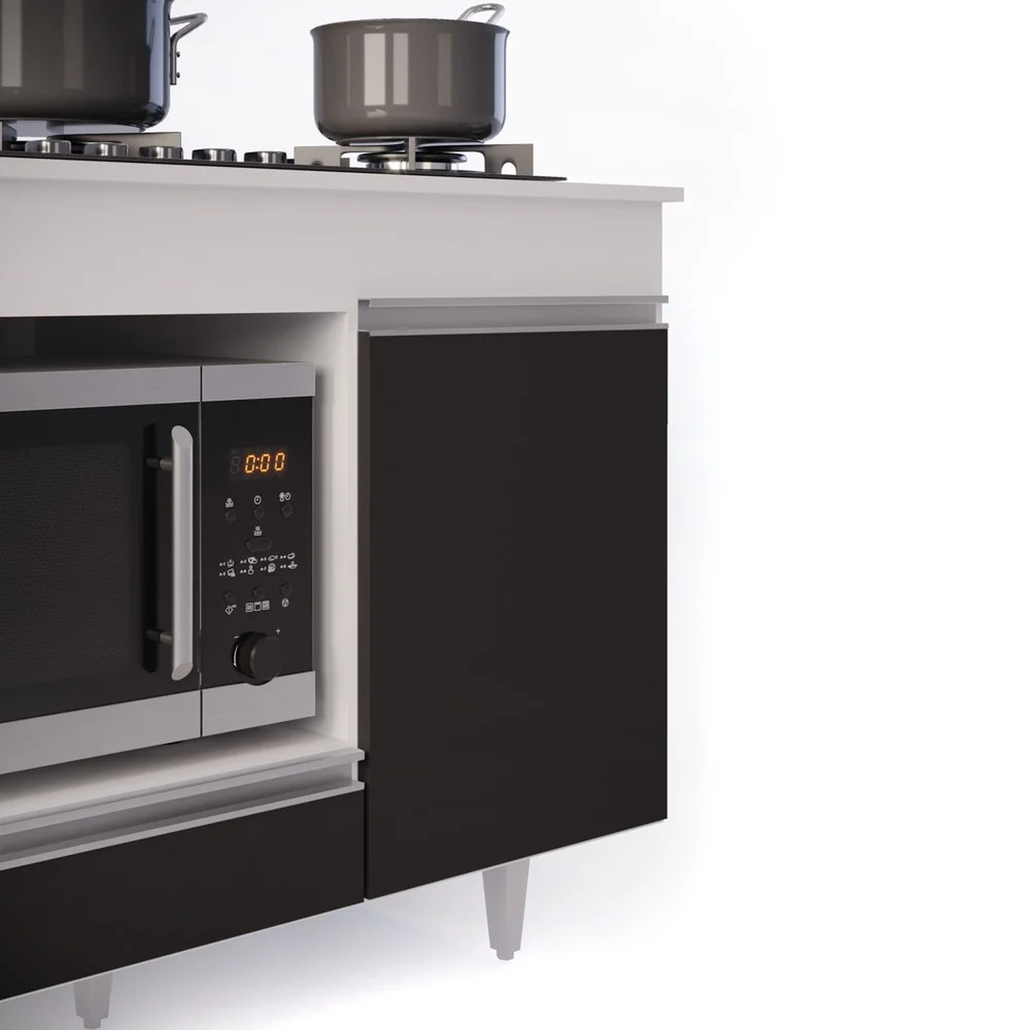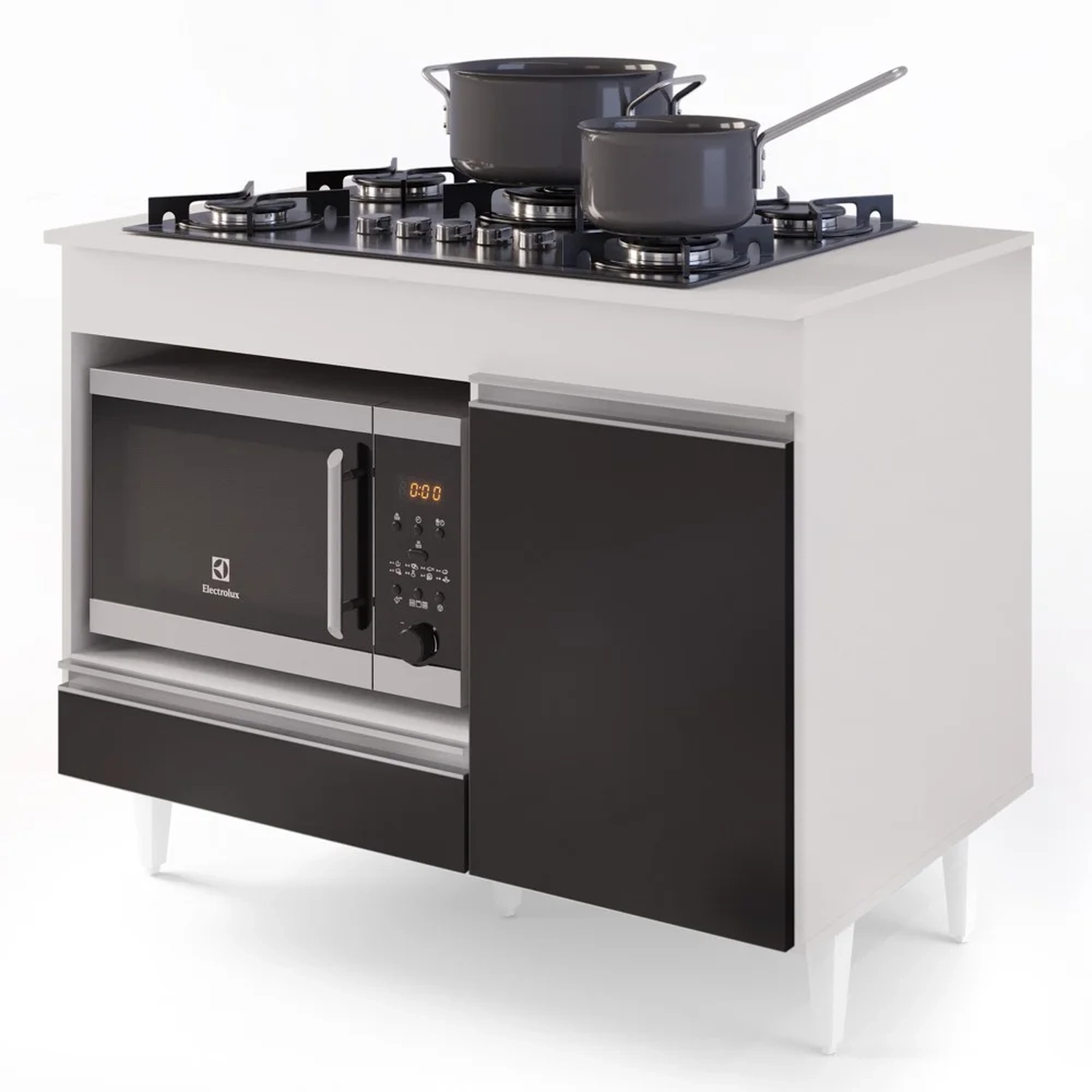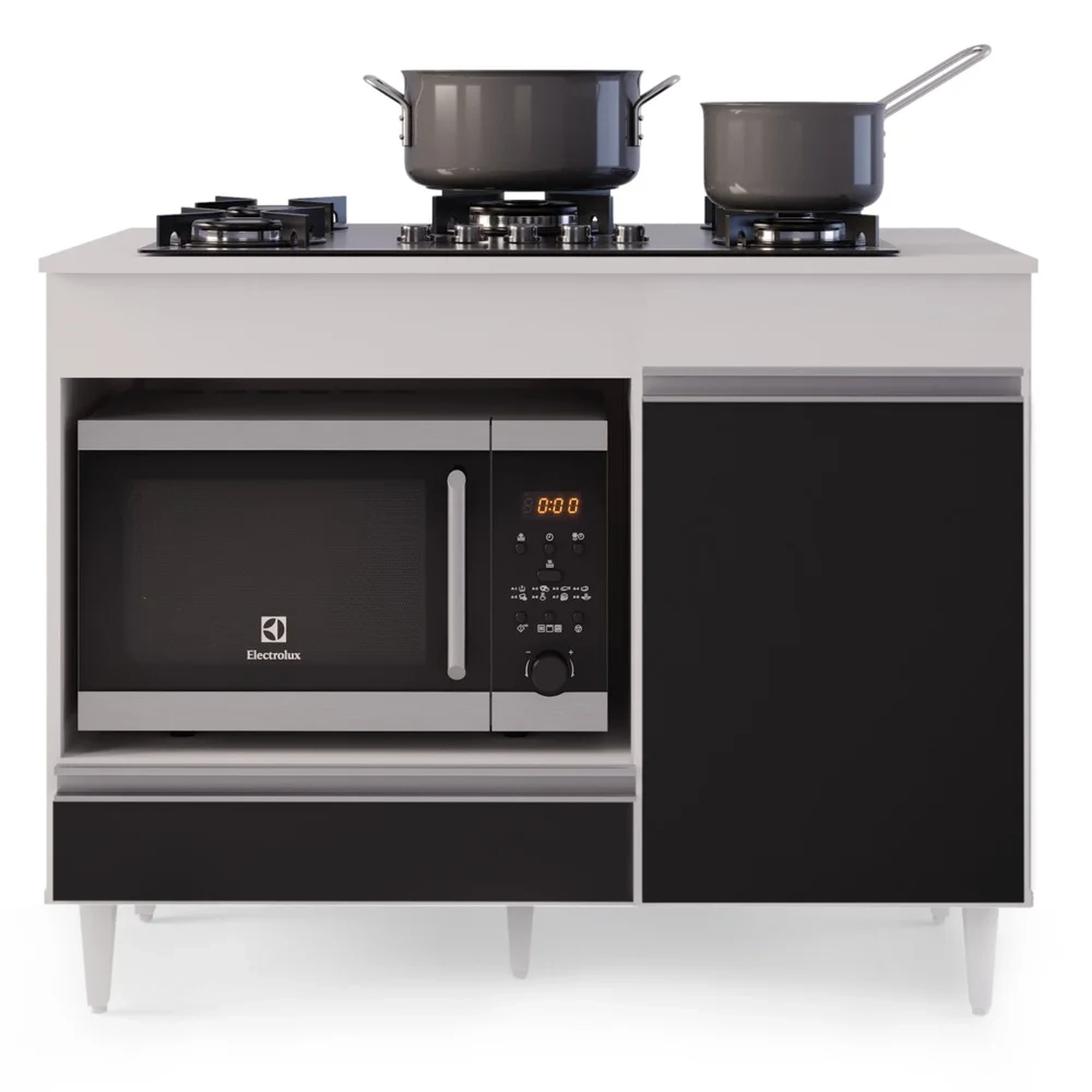 O Balcão Para Cooktop Branco/Preto é um complemento simplesmente indispensável para ajudar a manter a organização nesse cômodo e de quebra, ainda agregar na decoração. Mas o detalhe especial do Balcão Georgia é com certeza sua praticidade! Sabe como? Pois ele possui tampo com marcação adaptável de 4 para 5 bocas, também apresenta 1 porta de amplo espaço interno, 1 gaveta e 1 nicho para forno ou microondas. Ah, e esse balcão multiuso ainda é todo fabricado em MDP com pés em PVC e acabamento em pintura BP agregando qualidade e resistência!!