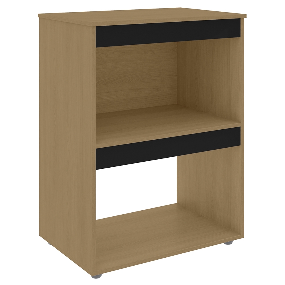 Balcão Para Cooktop e Forno Microondas 75cm Adriana Amêndoa/Preto - AJL Móveis