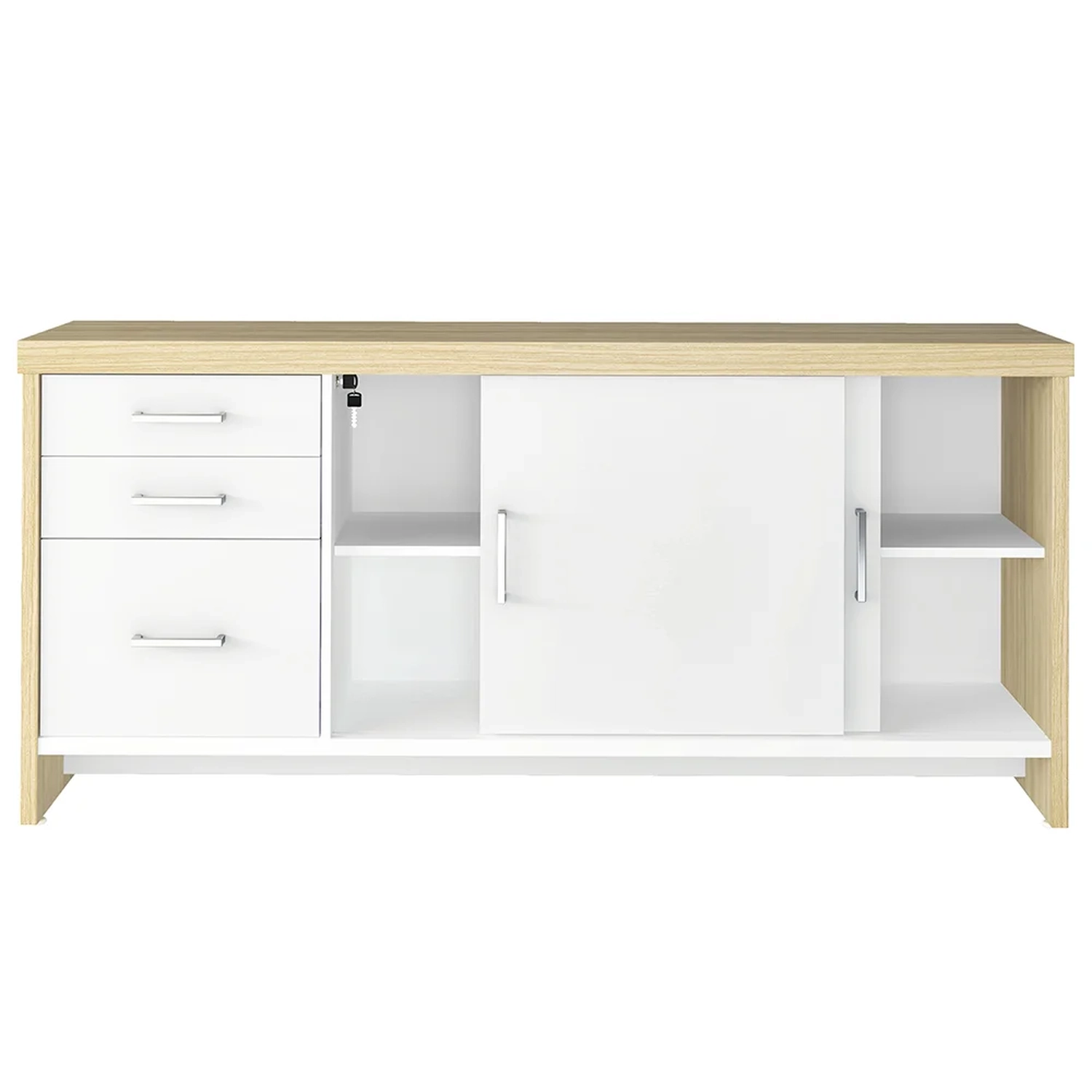Se você está procurando um móvel prático e versátil para o seu escritório ou home office, o Balcão para Escritório 160cm 2 Portas 3 Gavetas Corp A06 Carvalho/Branco, da Mpozenato, é a escolha perfeita.