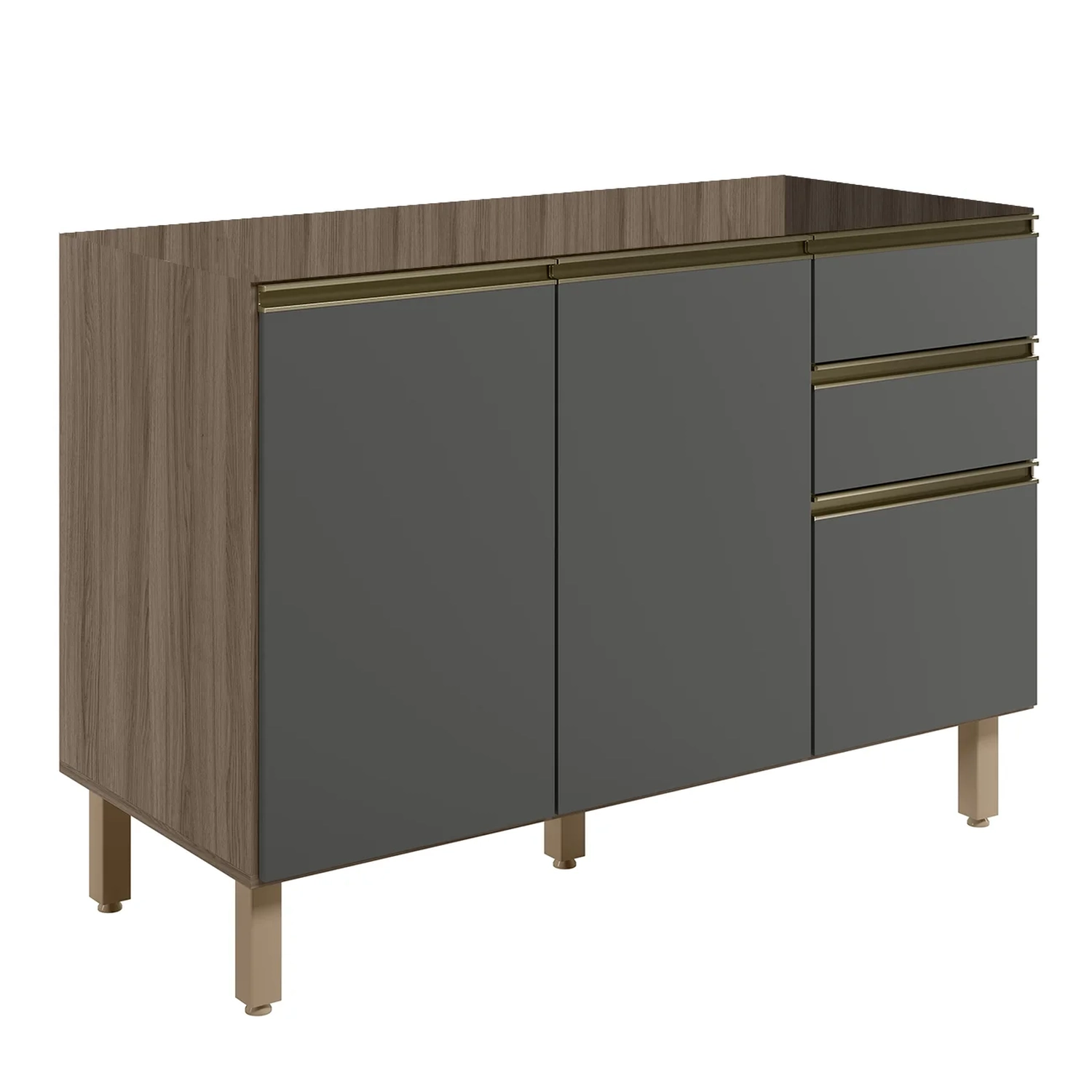 O Balcão Para Pia 120cm Sem Tampo Maly N03 Carvalho/Grafite, da Mpozenato em MDF de 15mm com acabamento em pintura UV é uma escolha elegante e funcional para uma Cozinha Moderna.