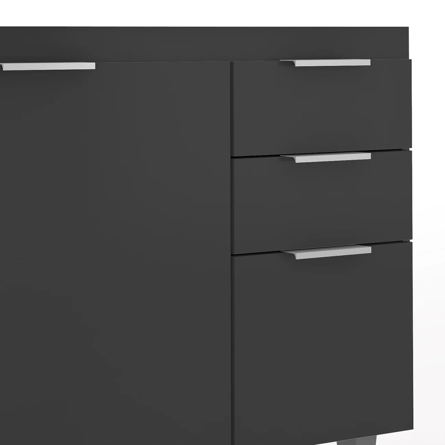 Dispõe de quatro portas com dobradiças metálicas, que proporcionam uma abertura suave, além de duas gavetas com corrediças metálicas. O Balcão Gabinete também se destaca pelos puxadores em alumínio, que adicionam um toque de sofisticação e elegância ao ambiente. Possui estrutura em MDP 15mm, com acabamento em BP, garantindo maior resistência e durabilidade. O Balcão de Cozinha não acompanha tampo para que o uso fique opcional com tampo ou pia. Conta com uma prateleira interna que otimiza o espaço e é uma excelente solução para organizar seus itens de maneira eficiente, acomodando mantimentos, panelas e outros utensílios. Os pés em PVC, são reguláveis, permitindo ajustar pequenos desníveis de piso e manter a estabilidade do produto.