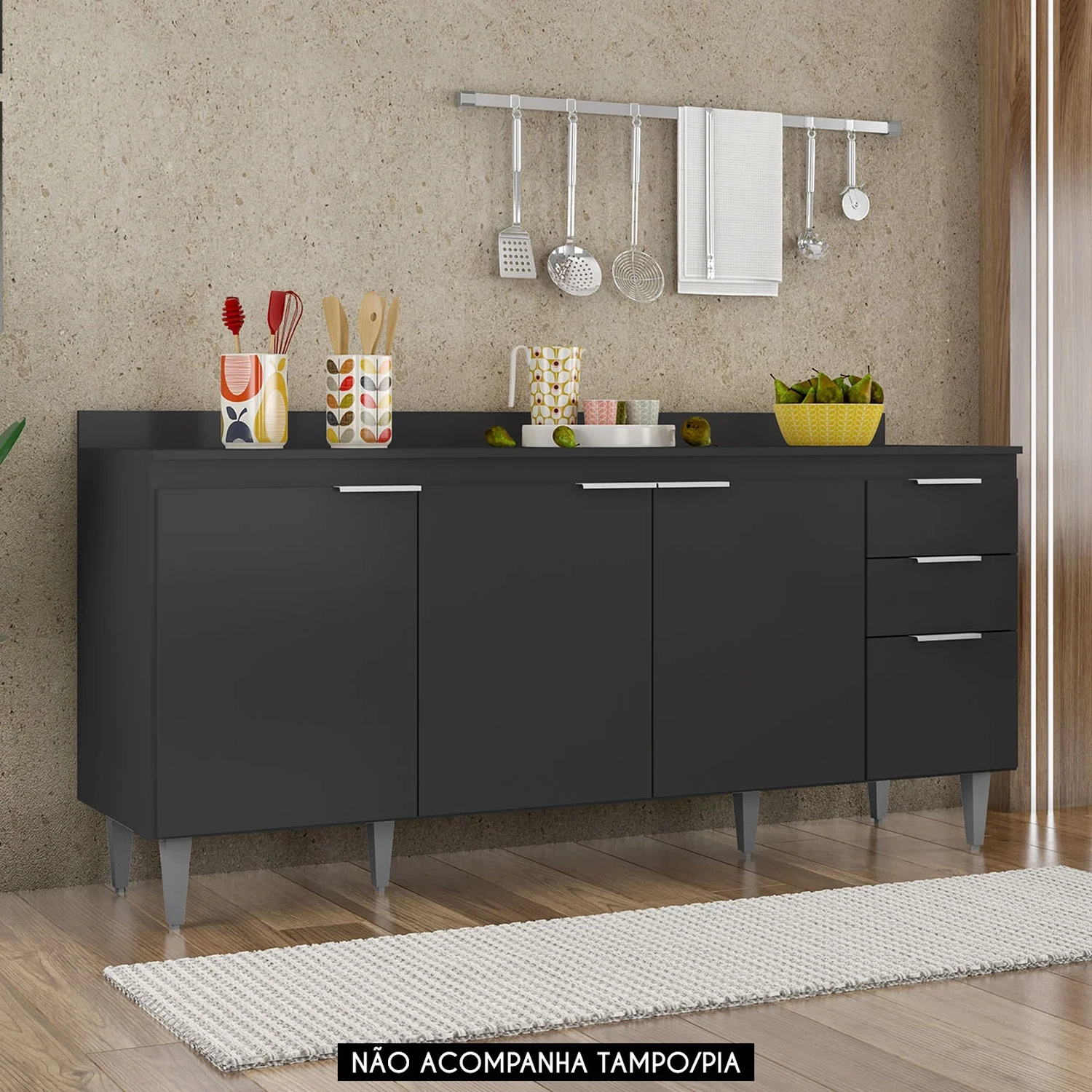 Compor a Cozinha com praticidade e estilo pode ser mais fácil do que você imagina. Com o Balcão Para Pia 180cm Sem Tampo Pérola Z34 Preto da Mpozenato, você transforma seu espaço, tornando-o mais moderno, funcional e perfeito para o seu dia a dia.