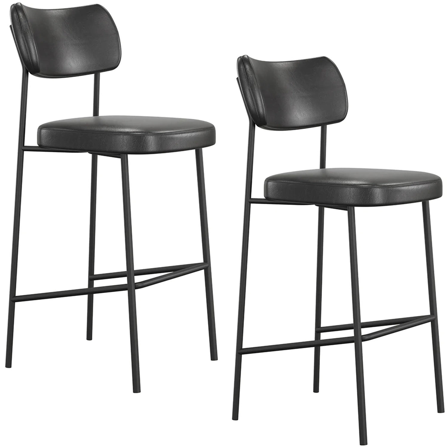 Banqueta Alta Bar Estofada Kit 2 Milli Sintético Preto A14 - Mpozenato