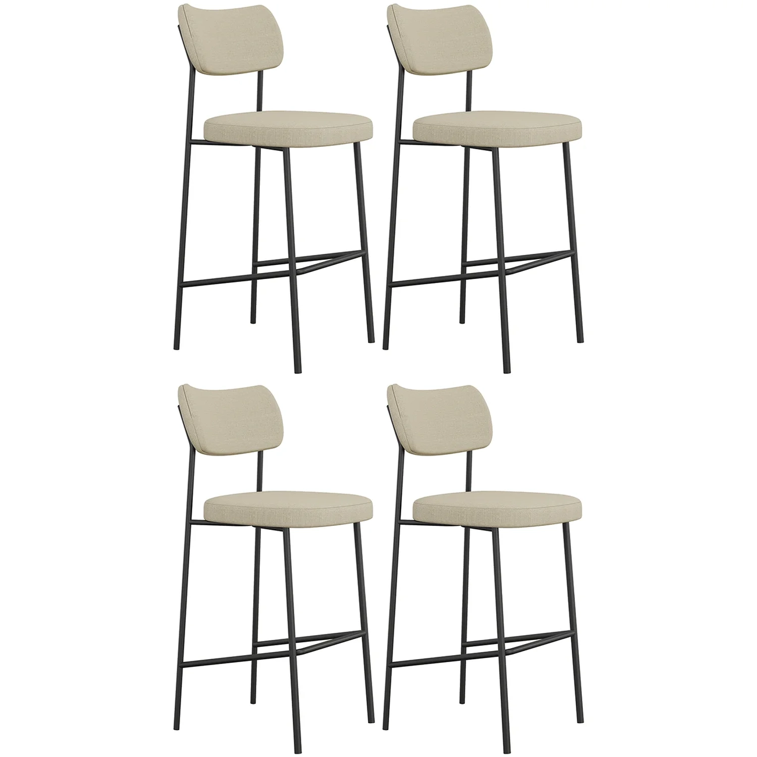 Banqueta Alta Bar Estofada Kit 4 Milli Linho Areia A14 - Mpozenato