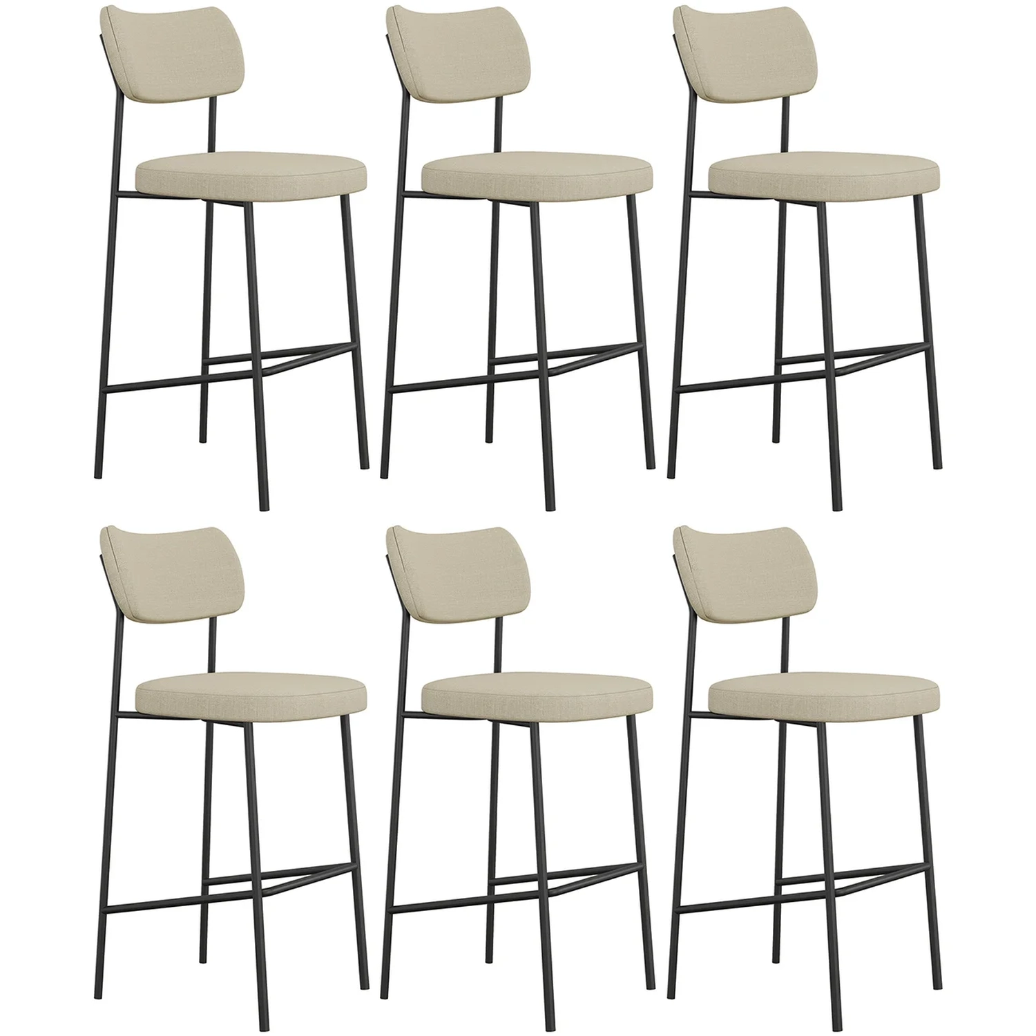 Banqueta Alta Bar Estofada Kit 6 Milli Linho Areia A14 - Mpozenato