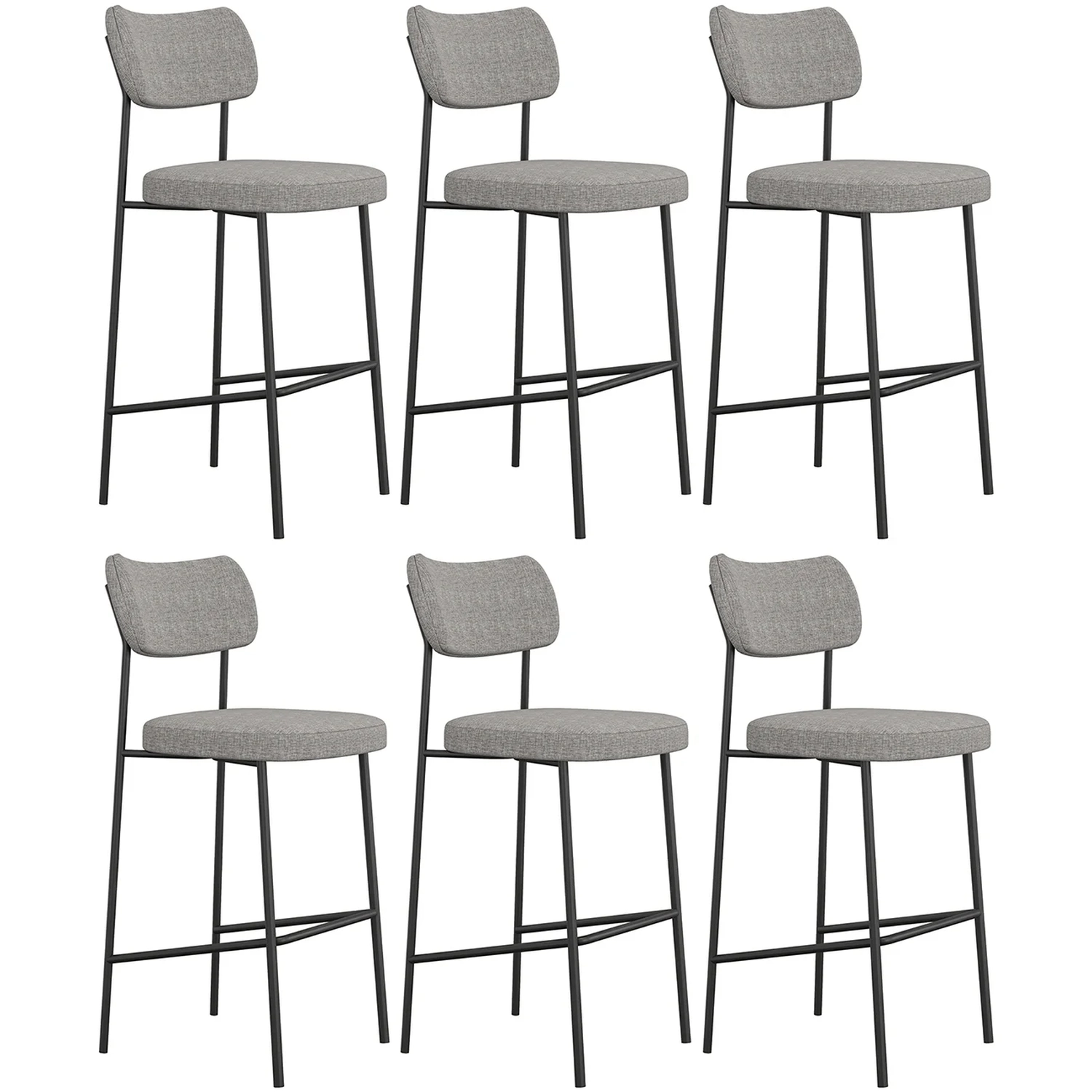 Banqueta Alta Bar Estofada Kit 6 Milli Linho Cinza A14 - Mpozenato