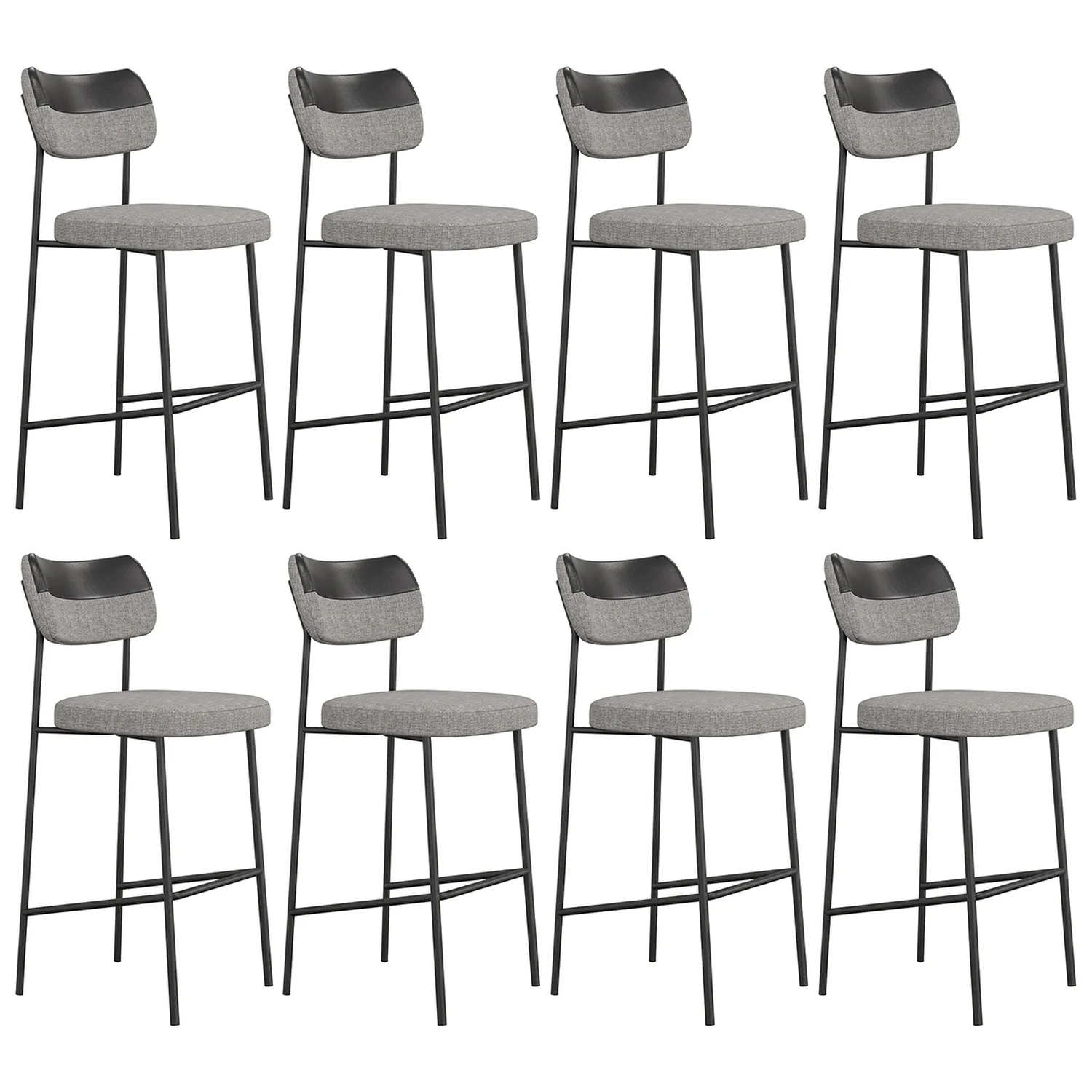 Banqueta Alta Bar Estofada Kit 8 Milli Linho Cinza/Preto A14 - Mpozenato