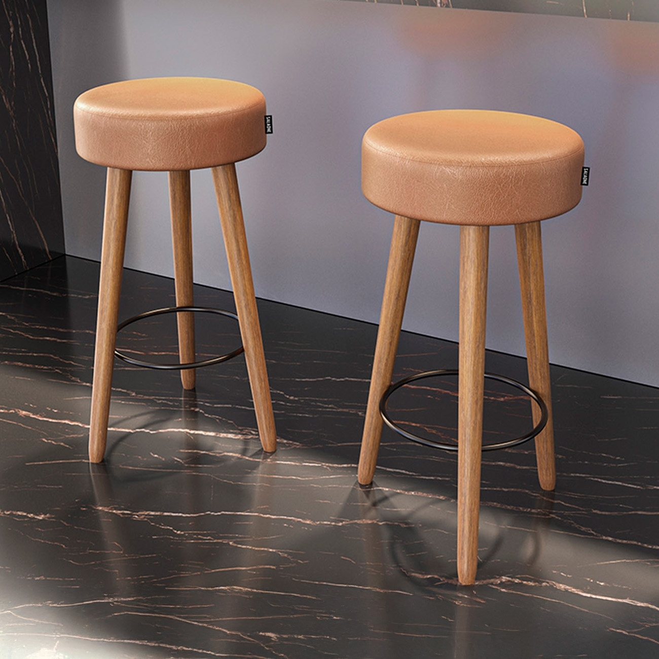 Banqueta Alta Estofada Pés Palito Kit 2 Hong Sintético Amarula S08 - Mpozenato