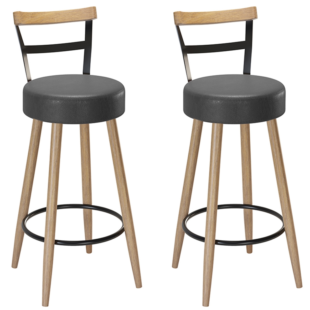 Os pés rosqueáveis em madeira de eucalipto com 60 cm de altura proporcionam estabilidade e segurança. O conjunto é composto por duas unidades, ideal para compor Área Gourmet com Design Moderno e foco em Conforto.