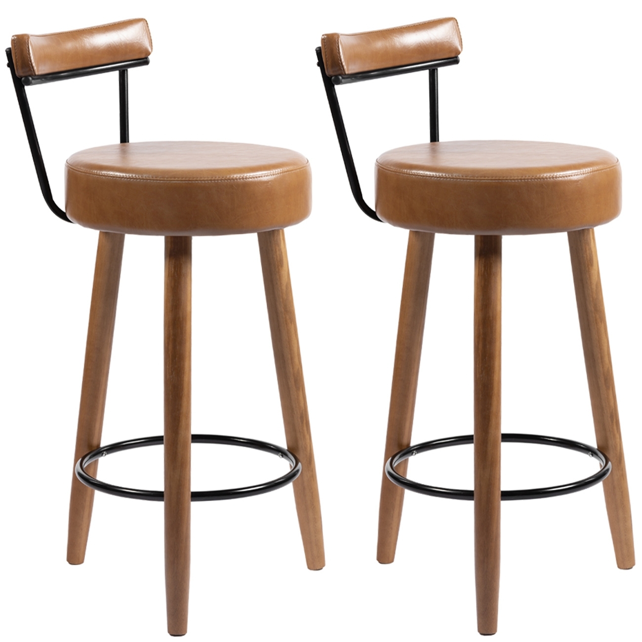 Banqueta Alta Estofada Pés Palito Kit 2 Tília Sintético Amarula S08 - Mpozenato