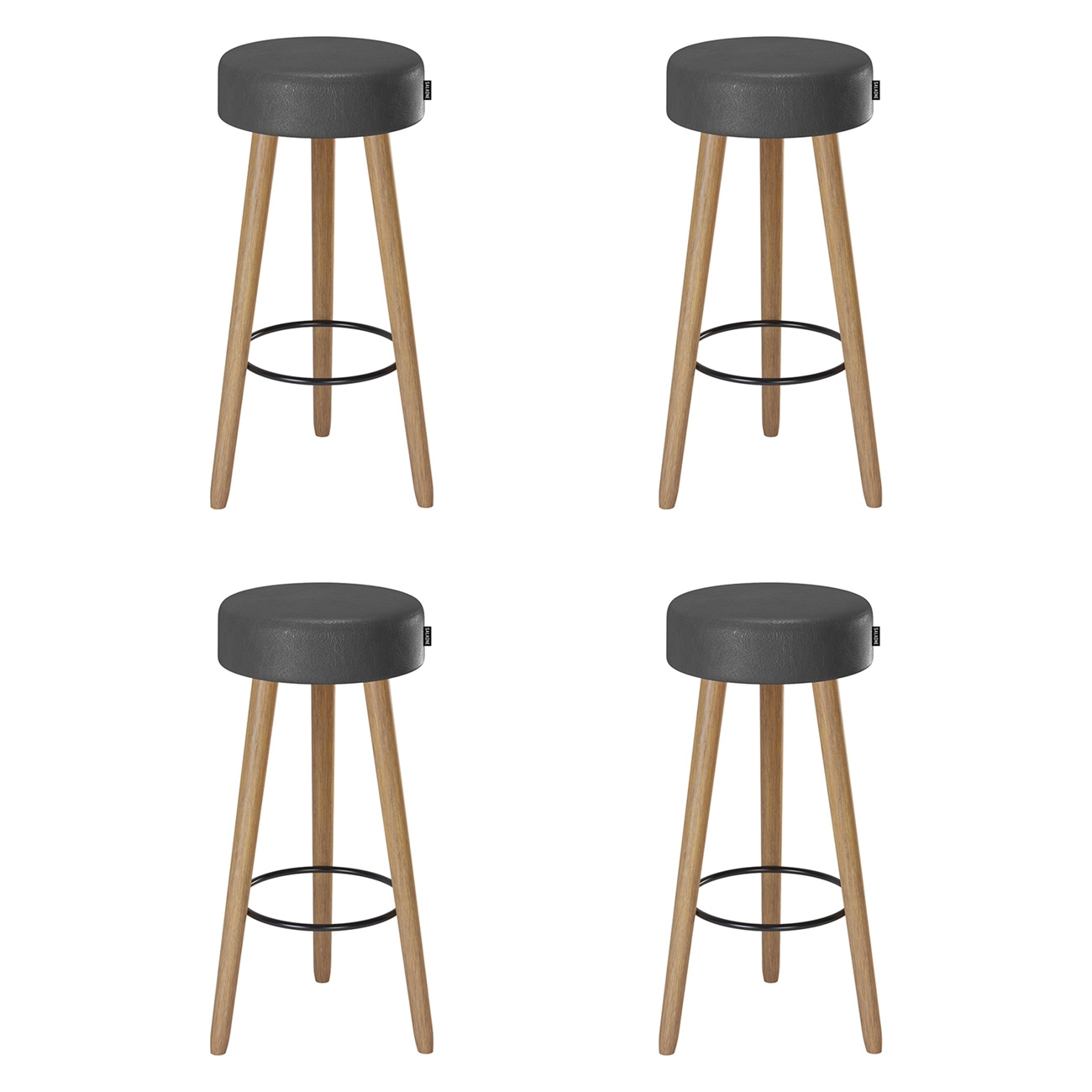 Banqueta Alta Estofada Pés Palito Kit 4 Hong Sintético Preto S08 - Mpozenato