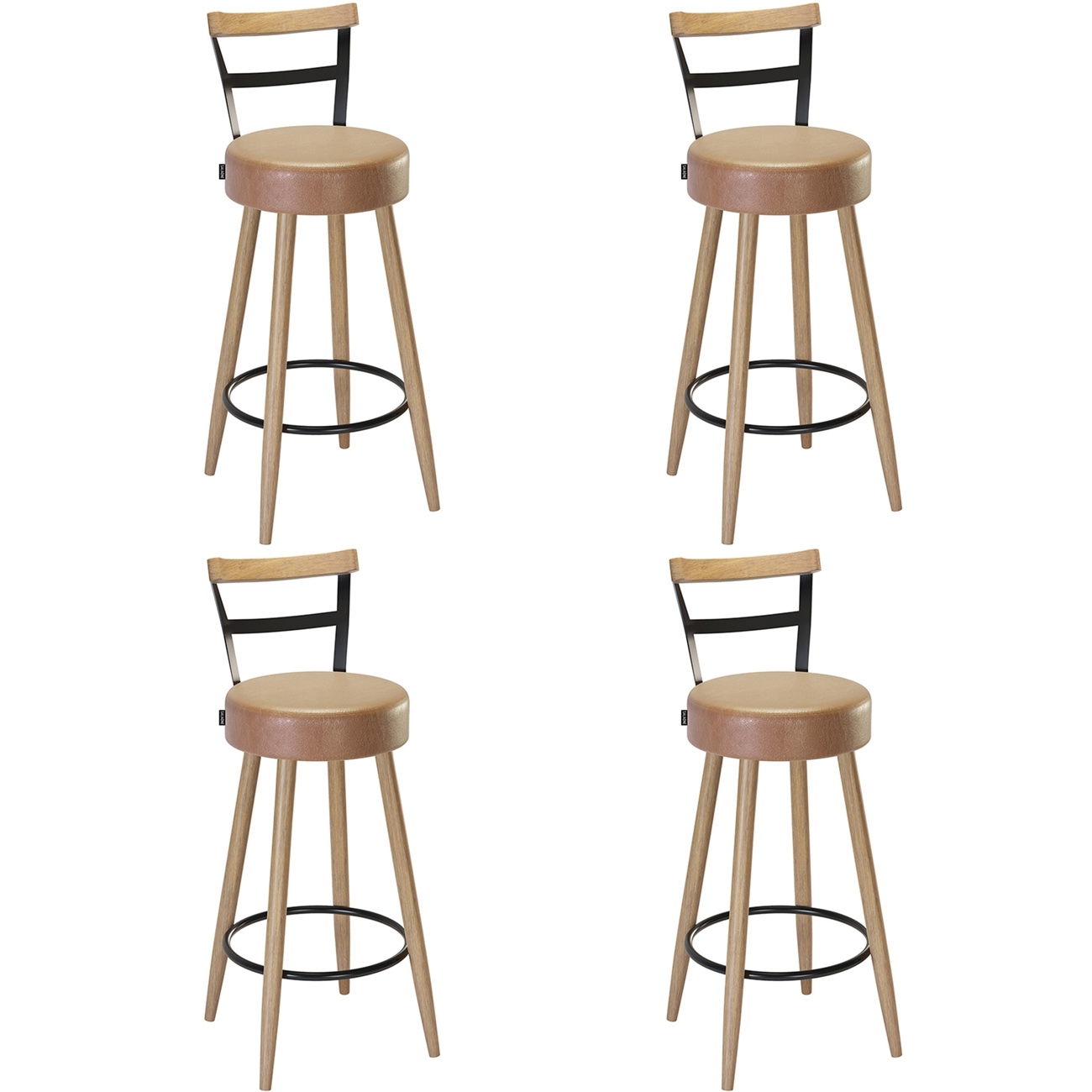 Banqueta Alta Estofada Pés Palito Kit 4 Martin Sintético Amarula S08 - Mpozenato