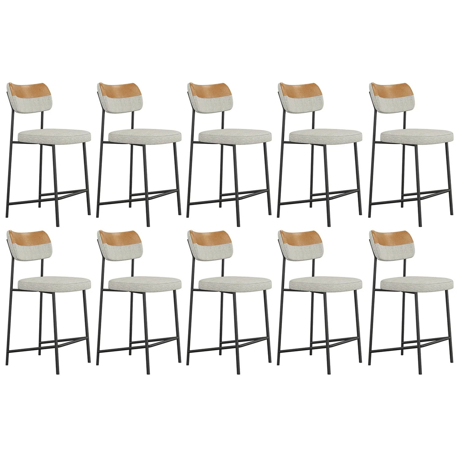 Banqueta Cozinha Média Kit 10 Milli Linho Caramelo/Cinza A14 - Mpozenato