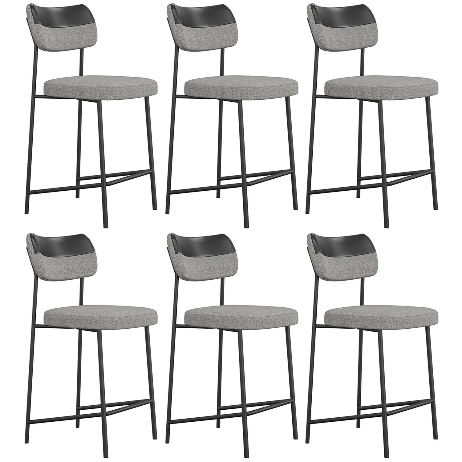 Banqueta Cozinha Média Kit 6 Milli Linho Cinza/Preto A14 - Mpozenato