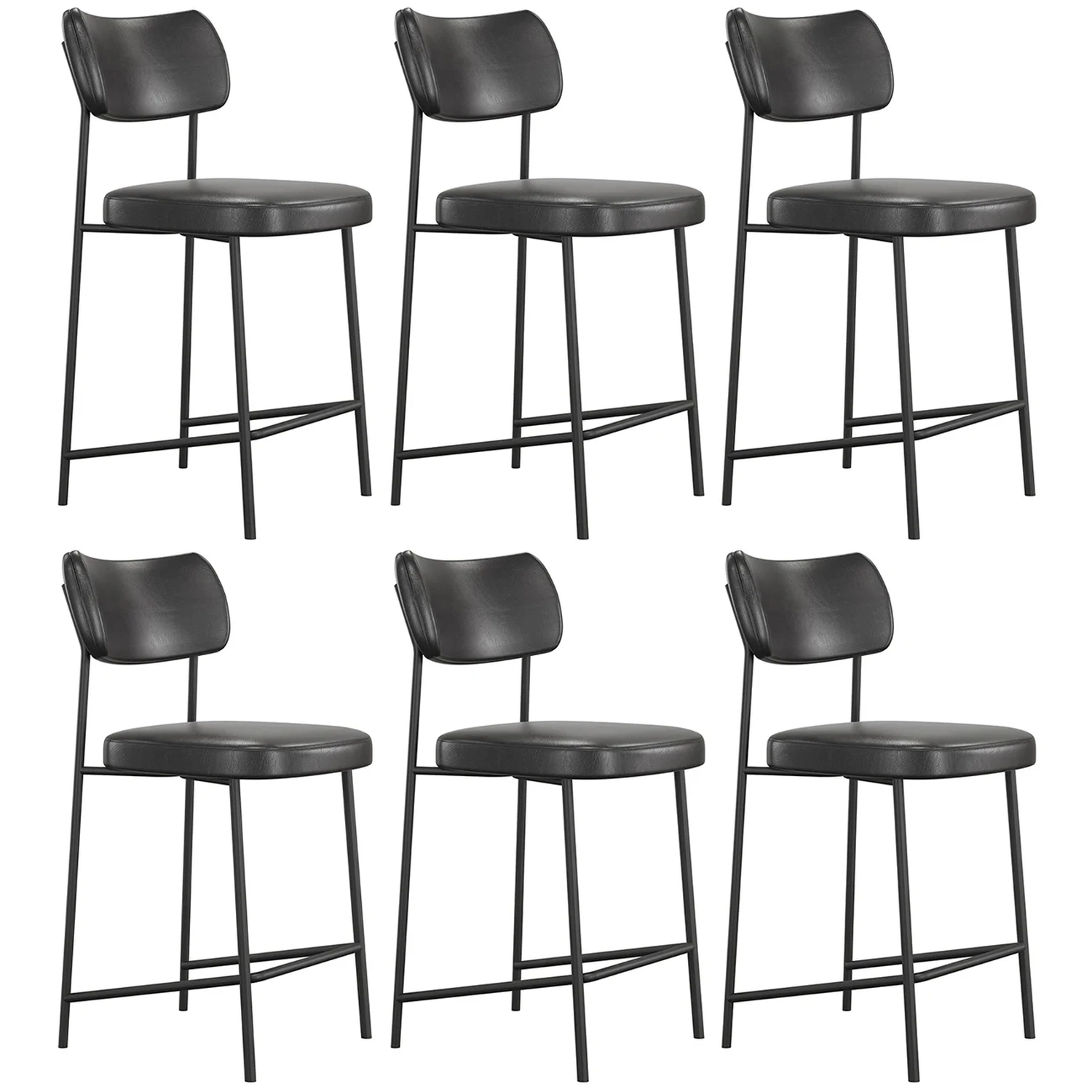 Banqueta Cozinha Média Kit 6 Milli Sintético Preto A14 - Mpozenato