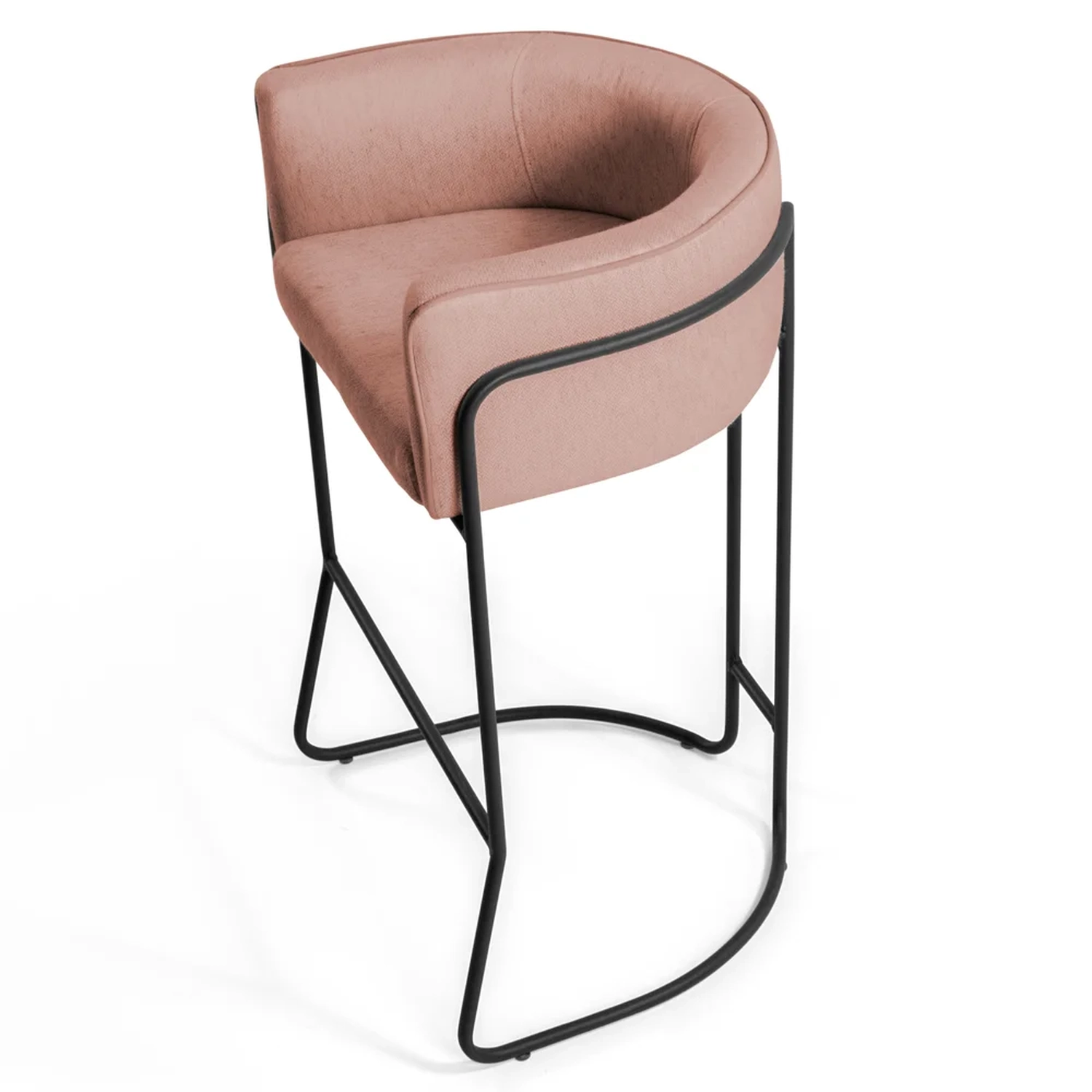 Banqueta Decorativa Base Aço Preto Betina C-105 Linho Rosê - Domi 76932