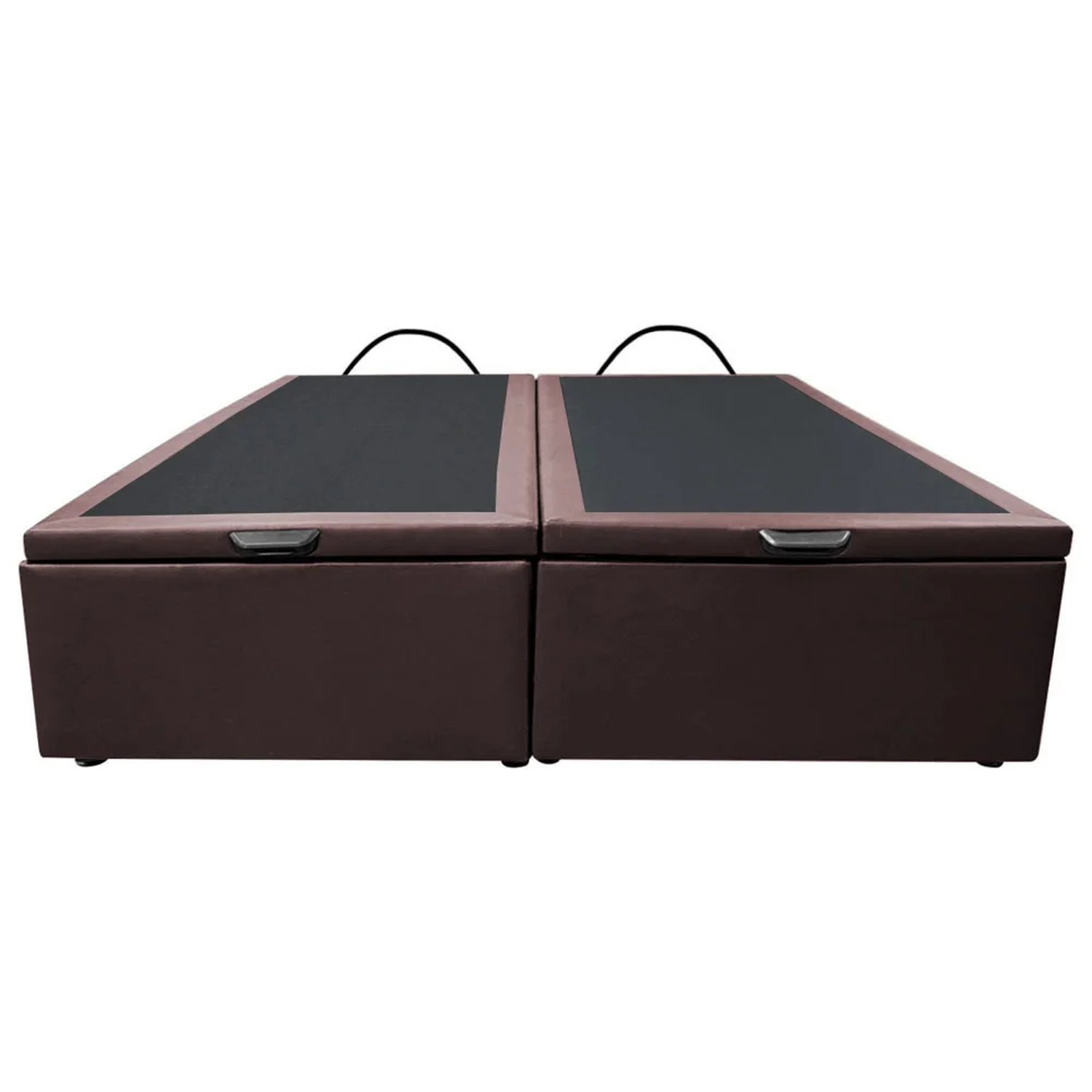 Base Box Baú para Cama Casal Queen 158x198cm Bipartido Liz S05 Sintético Marrom - Mpozenato